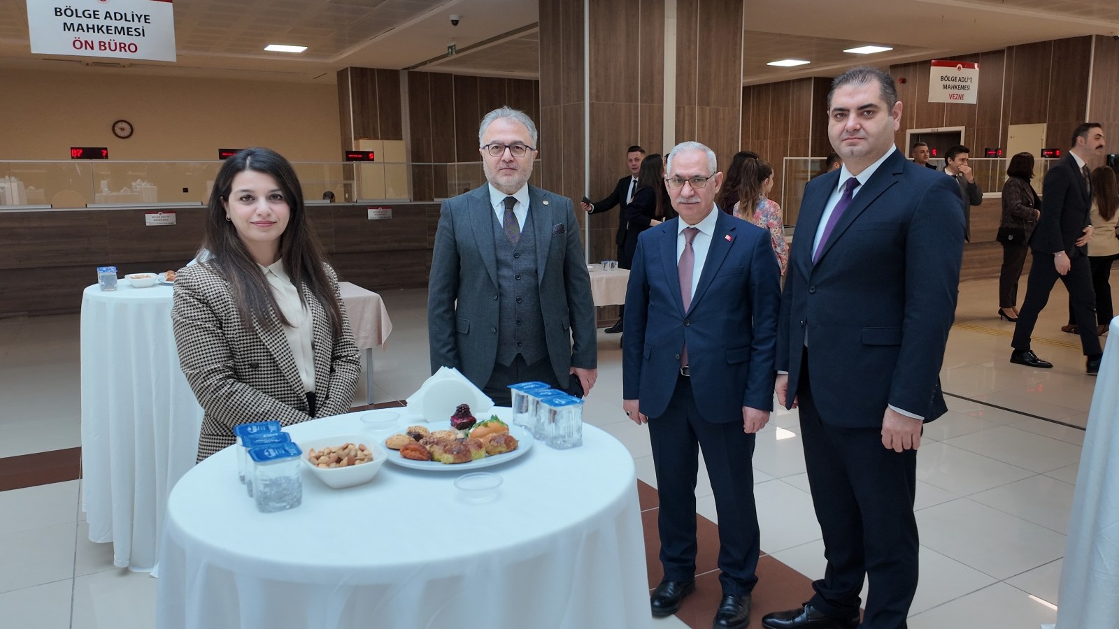 Bursa Barosu Başkanı Av. Metin Öztosun, yönetim kurulu üyeleri Av. Gülender Adıgüzel Özcan ve Av. Özen Dağdeviren, Bölge Adliye Mahkemesi Ön Büro alanında düzenlenen bayramlaşma kokteyline katıldı. Bayramlaşmada Bursa Cumhuriyet Başsavcısı Mustafa Çelenk, Adli Yargı İlk Derece Mahkemesi Adalet Komisyonu Başkanı Dr. Mesut Bilen, Bursa Bölge Adliye Mahkemesi Başkanı Abdulkadir Şahin, Bursa Bölge Adliye Mahkemesi Cumhuriyet Başsavcısı Sadık Bölek, Bölge İdare Mahkemesi Başkanı Mahmut Şahin, hakim ve savcılar ile adliye personeli bulundu.