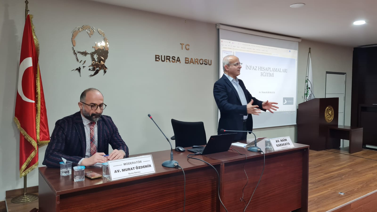 Bursa Barosu Eğitim Merkezi (BUBEM) tarafından düzenlenen "İnfaz Hukuku" konulu konferans Av. Özgür Aksoy Salonu'nda gerçekleştirildi. Av. Naim Karakaya'nın verdiği konferansın moeratörlüğünü Av. Murat Özdemir yaptı. Avukatları salona sığmadığı konferans sonunda Bursa Barosu Başkanı Av. Metin Öztosun, Naim Karakaya'ya anı plaketi verdi.