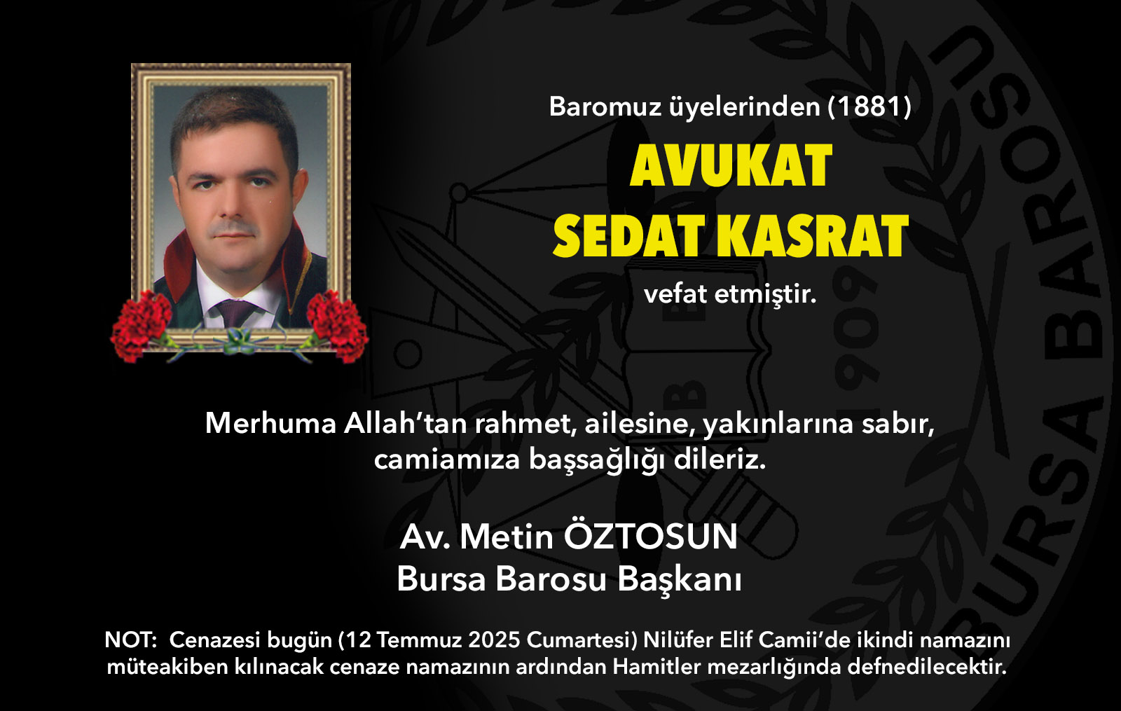 Av. Sedat Kasrat vefat etti