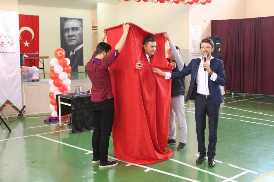 Bursa Cumhuriyet Başsavcısı Uğurhan Kuş, Başsavcı Vekili Sinan Sezer, Adli Yargı Adalet Komisyonu Başkanı Ali Rıza Bir, Bursa Barosu Başkanı Av. Gürkan Altun, önceki baro başkanları Av. İsmail Acar, Av. Yahya Şimşek, Cezaevinden Sorumlu Cumhuriyet Savcısı Musa Ayaz, Cezaevi Müdür Vekili Dursun Ali Ceryan ile Bursa Barosu yönetim kurulu ile çocuk komisyonu üyeleri, sponsor firma ve kuruluşların temsilcileri, Hamitler TOKİ Mesleki ve Teknik Anadolu Lisesi Adalet Bölümü öğrencilerinin katıldığı şenlik, saygı duruşu ve İstiklal Marşı'nın okunmasıyla başladı.