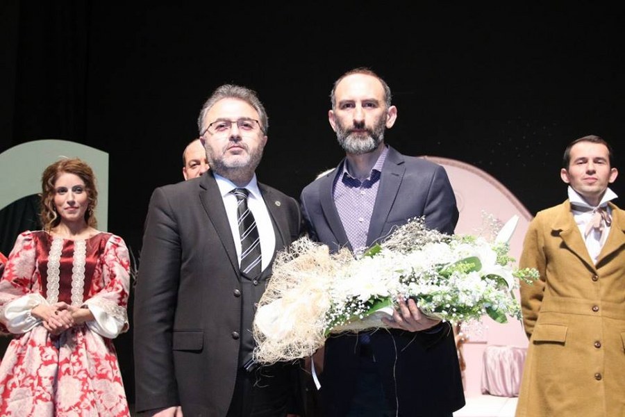 Oyunun sonunda izleyiciler ayakta alkışlarken, Bursa Barosu Saymanı Av. Metin Öztosun, Yönetmen İzzet Boğa'ya ve tüm oyunculara çiçek verdi.