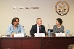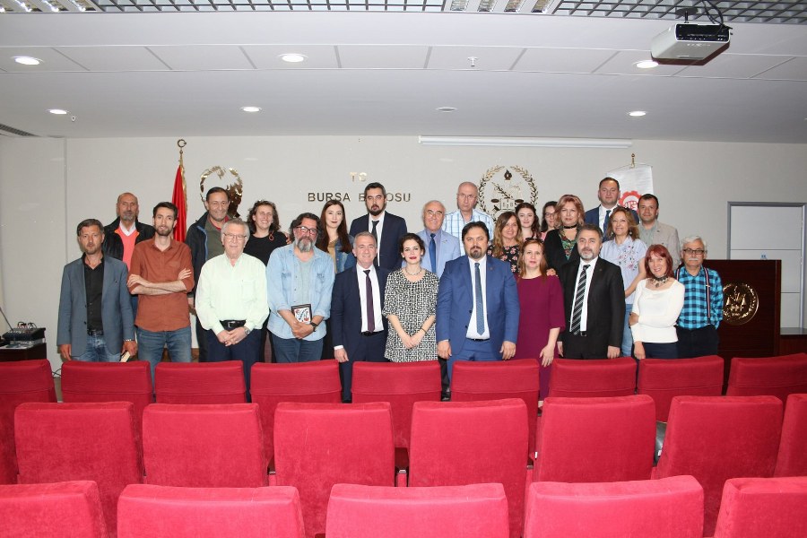 Bursa Barosu'nun, Bursa Akademik Odalar Birliği Yerleşkesi'ndeki Av. Özgür Aksoy Konferans Salonu'nda “Sanata ve hayata dair” temasıyla gerçekleşen söyleşiye Bursa Barosu Başkanı Avukat Gürkan Altun, Çağdaş Gazeteciler Derneği Bursa Şube Başkanı Aykut Güngör, gazeteci ve avukatlar katıldı.