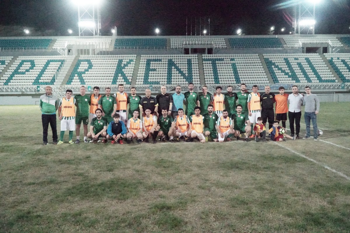 Bursa Barosu'nun, biyokütle enerji santralı yapımına karşı gösterdikleri direnişe destek verdiği Büyükorhan İlçesine bağlı Karaağız Köyü'nün futbol takımı ile Bursa Barosu futbol takımı dostluk maçı oynadı. Nilüfer Belediyesi İbrahim Yazıcı Stadyumu'nda bu akşam oynanan maçı avukatlar ve Karaağız köylüleri ile birlikte Bursa Barosu Başkanı Av. Gürkan Altun, yönetim kurulu üyeleri Av. Gonca Gülçin ile Av. Yıldırım Hacıoğlu da izledi. Bursa Barosu takımının 8-2 üstünlüğüyle sona eren mücadeleden sonra oyuncular, Bursa Barosu yöneticileri ve Karaağız köylüleri hep birlikte sahada hatıra fotoğrafı çektirdi.