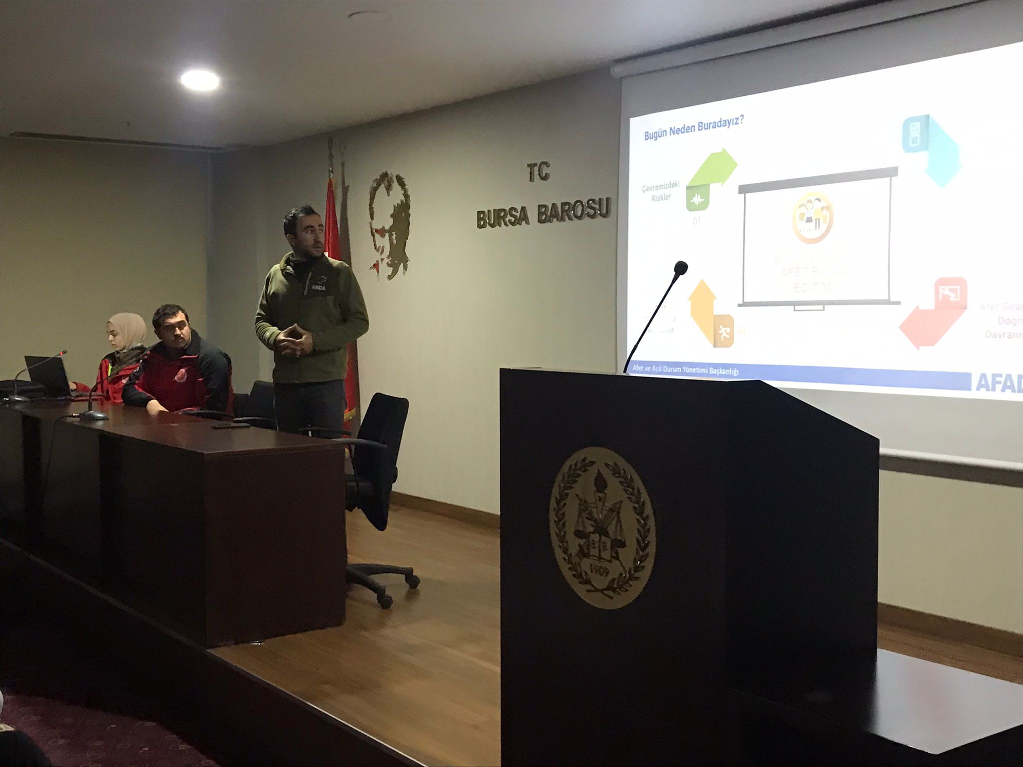 Deprem ve Afet Hukuku Merkezi tarafından düzenlenecek eğitimler serisinden ilki, arama kurtarma faaliyetleri yürüten ANDA Derneği işbirliğinde, "Afet Farkındalık Eğitimi" başlığı ile 16.03.2023 Perşembe günü BAOB Av. Özgür Aksoy Konferans Salonunda gerçekleştirilmiştir.