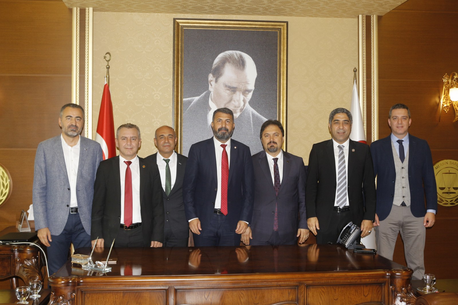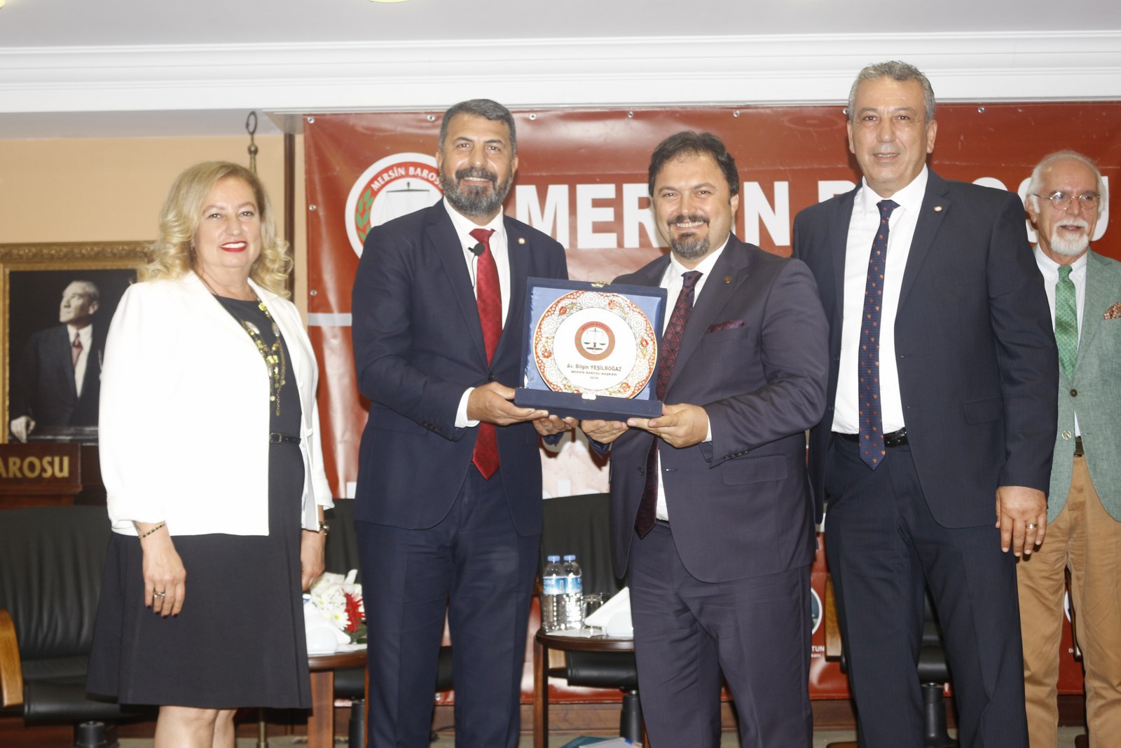 Programın sonunda Mersin Barosu Başkanı Av. Bilgin Yeşilboğaz, yönetim kurulu üyeleri ve Staj Eğitim Merkezi Başkanı Av. Kasım Kozanoğlu ile baro başkanlarına teşekkür plaketi verdi.