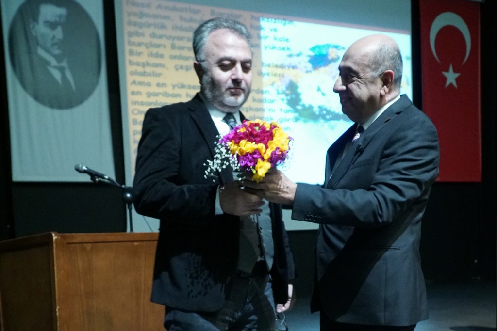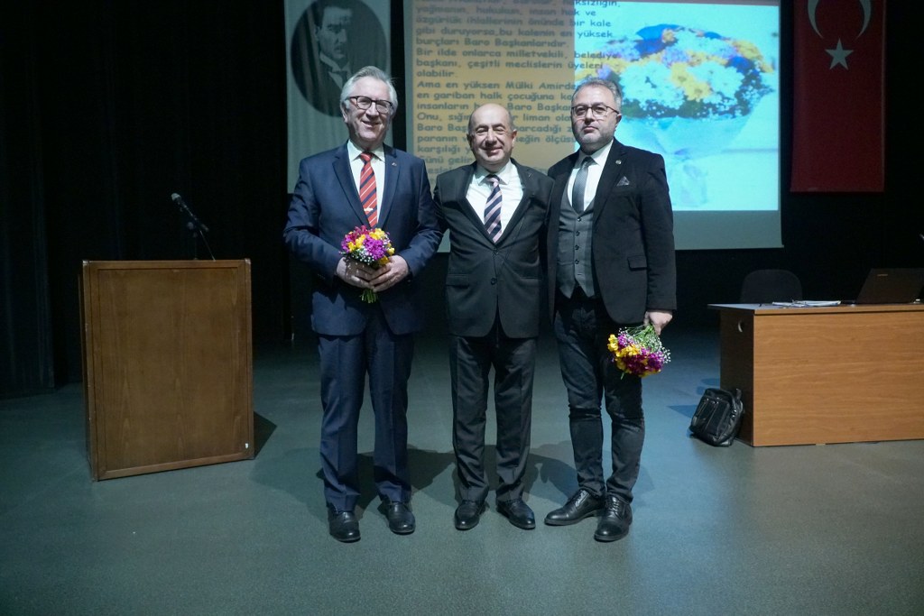 Av. Adil Giray Çelik, ikinci baskısı TBB tarafından basılan “Sokrates'ten Sivas'a Tarihin Yargıladığı Davalar” kitabına konu olan Roma'dan günümüze dava örneklerini özetledi, avukatlık mesleğinin ilk gününden itibaren hangi evrelerden geçtiğini anlattı. Katılımcı avukatlar ve stajyer avukatların ilgiyle dinlediği konferans sonunda Çelik, Bursa Barosu Başkanı Öztosun ve kendisinin, mesleğe başladıkları yıla ait fotoğrafları ekrana yansıttı, avukatlık ve baro yöneticiliğinin ne kadar meşakkatli bir meslek olduğunu anlattı. Çelik, Öztosun ve Arabacı'ya birer demet kır çiçeği, Öztosun da Çelik'e anı plaketi verdi.