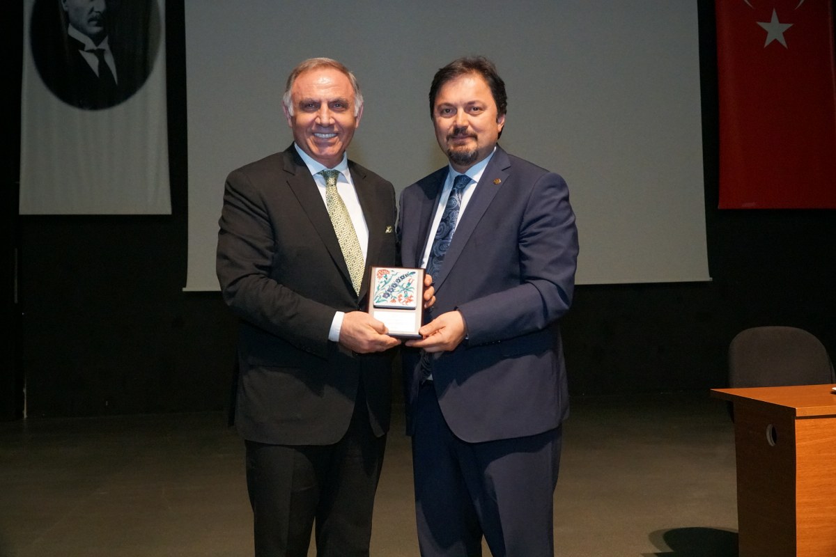 Sunumun sonunda Bursa Barosu Başkanı Av. Gürkan Altun, günün anısına Av. Dr. Başar Yaltı'ya İznik çinisi plaket hediye etti.
