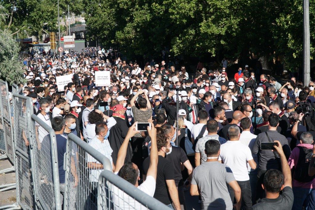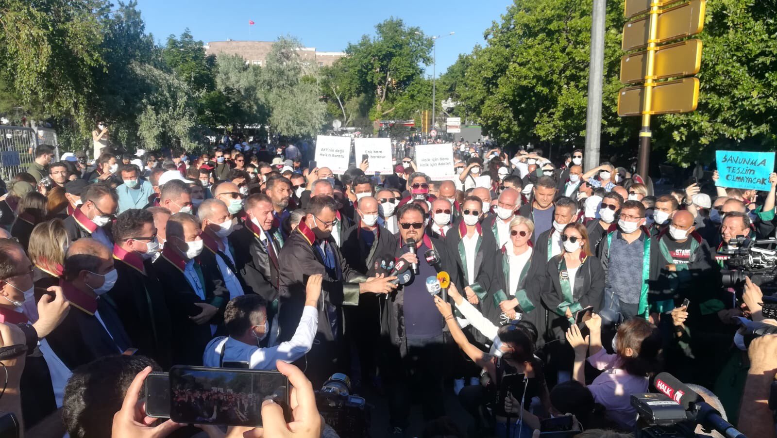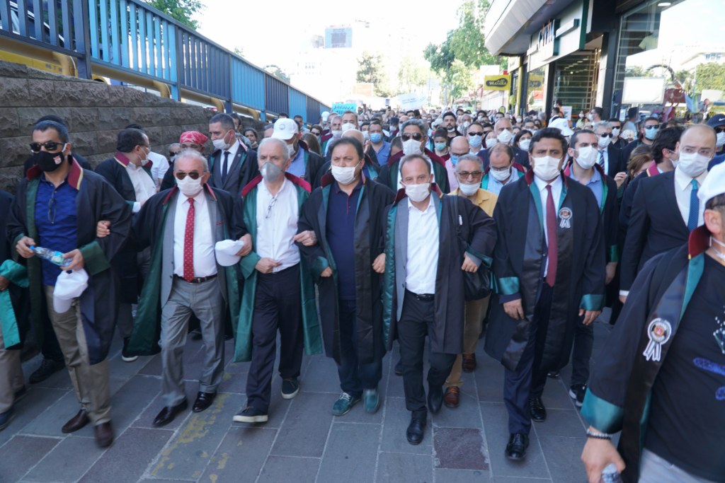 Baro başkanları ve avukatlar, kanun teklifinin geri çekilmesini istedikleri dilekçelerini TBMM'ye sunmak için pandemi kuralları ve TBMM çevresindeki eylem yasağı nedeniyle tek sıra halinde Tunalı Hilmi Caddesi'nden harekete geçtiler. Baro başkanları ve avukatlar, Tunus Caddesi'ne yönlendirildi. Cadde boyunca sloganlar atarak yürüyen avukatlar, cadde sonunda bir kez daha durduruldu. Bir süre bekleyişin arından barikatı yeniden açan polis, avukatları Kennedy Caddesi'nin köşesindeki Ankara Sanayi Odası önünde bir kez daha durdurdu. Baro başkanları ile polis şefleri arasındaki görüşmelerde, dilekçelerin meclise iletilmek üzere tek elde toplanması kararlaştırıldı. Dilekçeler TBMM'ye iletilmek üzere toplanırken, baro başkanları ve arkalarında avukatlar, Ankara Adliyesi'ne yürümeye başladı ve Tunus Caddesi, Karanfil Sokak, Selanik Caddesi, Mithatpaşa Caddesi üzerinden Sıhhiye Kavşağı'na çıkıp Adalet Sarayı'na gittiler.