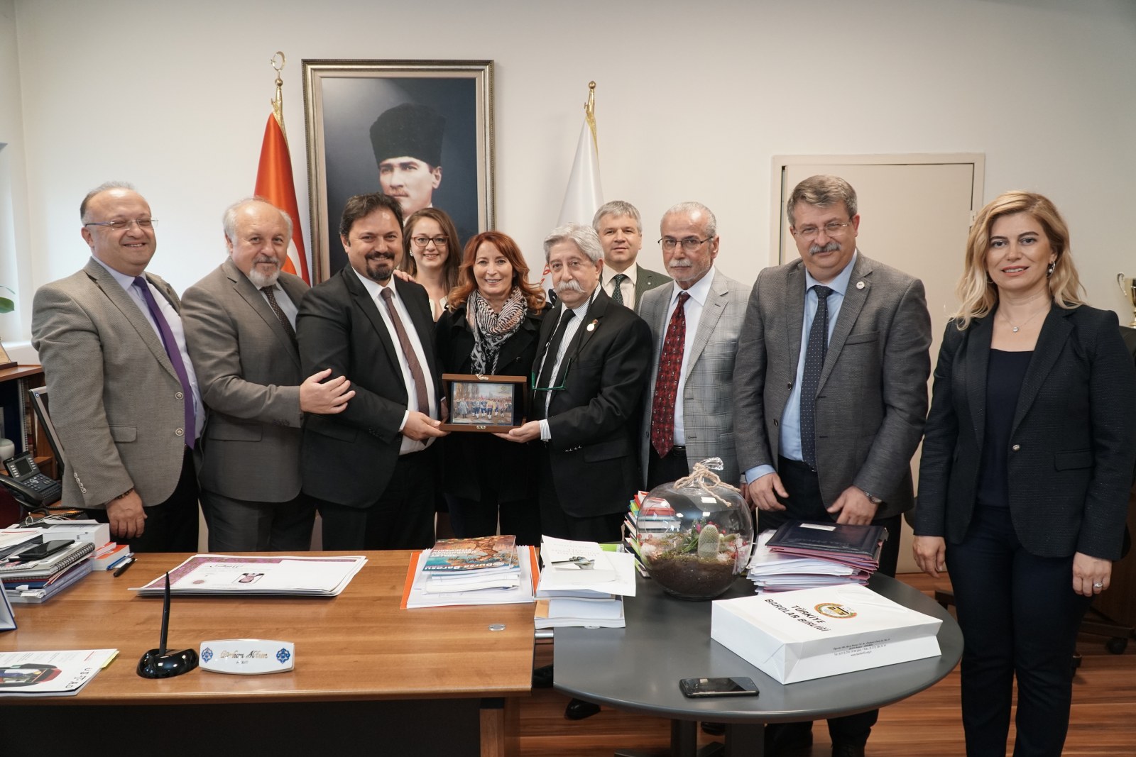 Baro Disiplin Kurulları ilk kez Bursa Barosu ev sahipliğinde toplanacak. 19 Ekim 2019 Cumartesi günü Almira Otel'de gerçekleştirilecek toplantıya tüm baroların disiplin kurullarıyla, Türkiye Barolar Birliği Disiplin Kurulu başkan ve üyeleri katılacak. Çok sayıda baro başkanının da katılacağı toplantı öncesi Bursa Barosu Başkanı Av. Gürkan Altun'u ziyaret eden TBB Disiplin Kurulu Başkanı Av. Uğur Uzer, Altun'a, Atatürk'ün zeybek oynayan efeleri izlediği resmi bulunan anı plaketi verdi.