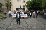 Yürüyüşe cübbelerle başlayan Altun ve beraberindekiler, Duaçınarı Tapu Kadastro Bölge müdürlüğü önünde cübbelerini çıkarıp, spor kıyafetleriyle devam ettiler.