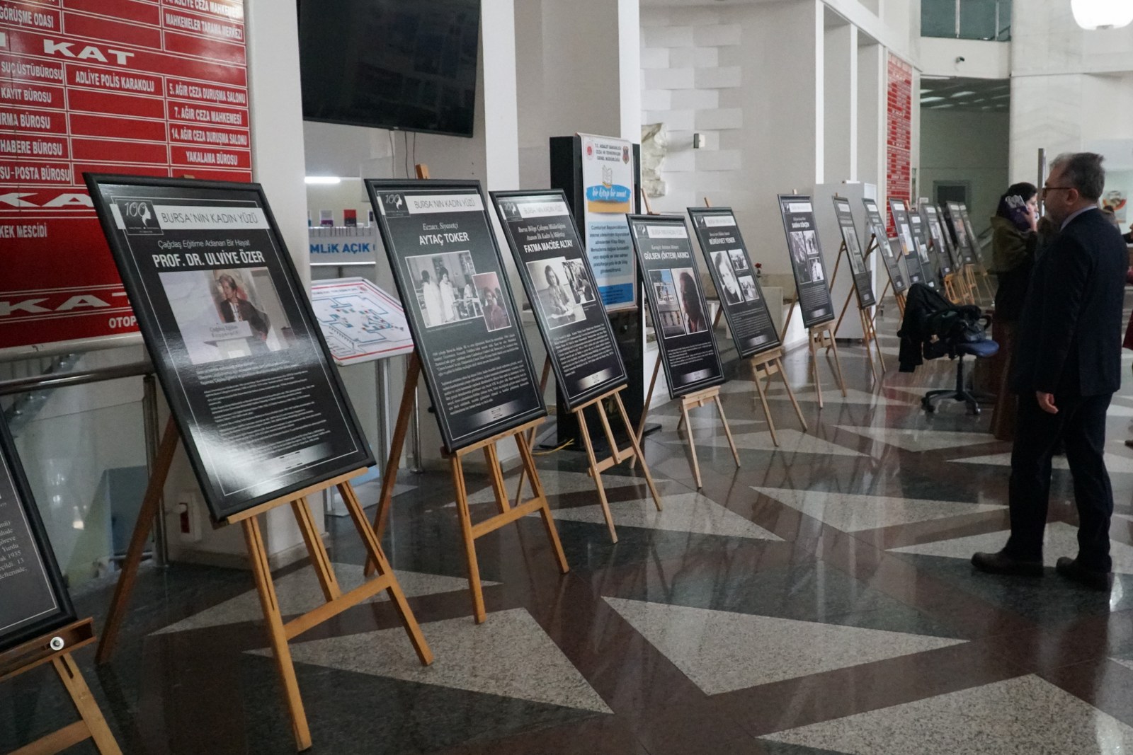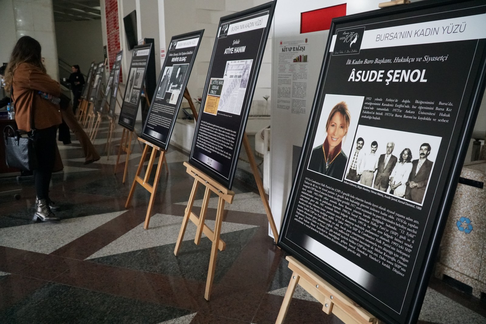 Bursa Barosu Kadın Hakları Merkezi'nin 8 Mart Dünya Emekçi Kadınlar Günü nedeniyle düzenlediği etkinliklerden biri de “Bursa'nın Kadın Yüzü” sergisi oldu. Bursa Adalet Sarayı giriş holünde Dr. Ceyhun İrgil'in “Bursa'nın Kadın Yüzü” adlı kitabında yer alan isimlerin özgeçmişleri ve fotoğraflarının yer aldığı sergi, Bursa Barosu Başkanı Av. Metin Öztosun ve yönetim kurulu, Kadın Hakları Merkezi üyeleriyle avukatların katılımıyla açıldı. Sergi, 11 Mart Cuma gününe kadar gezilebilecek.