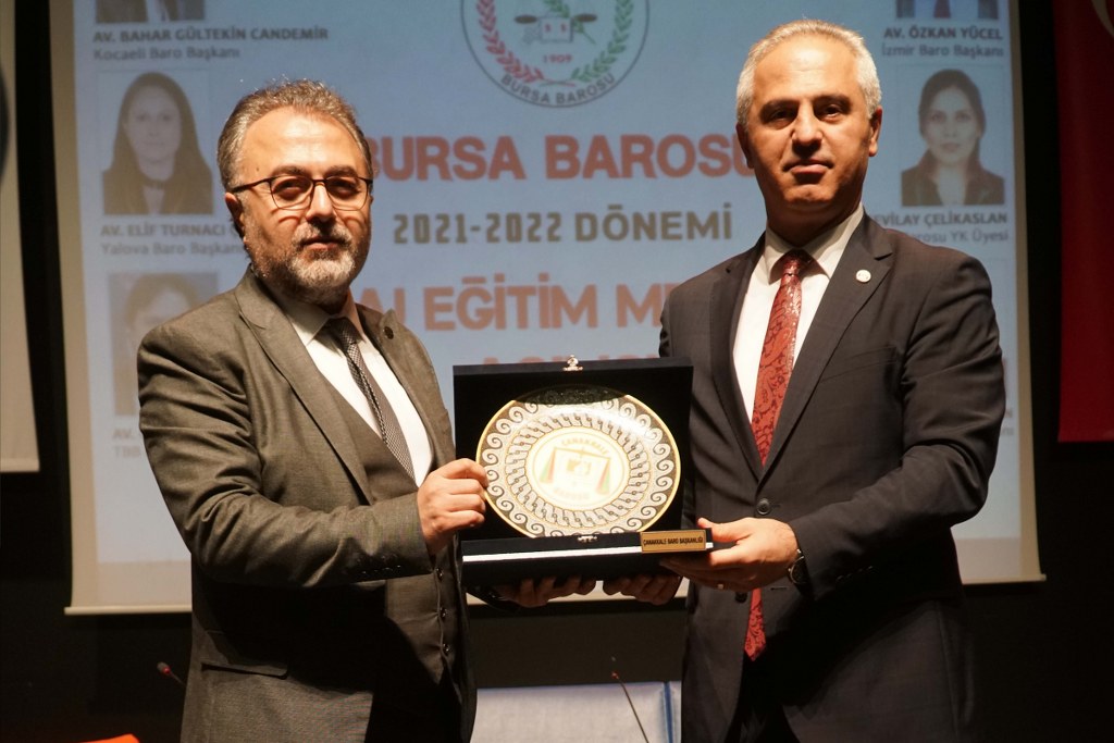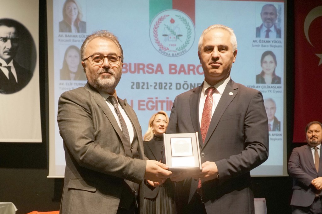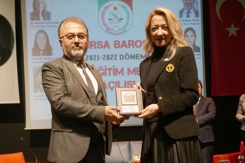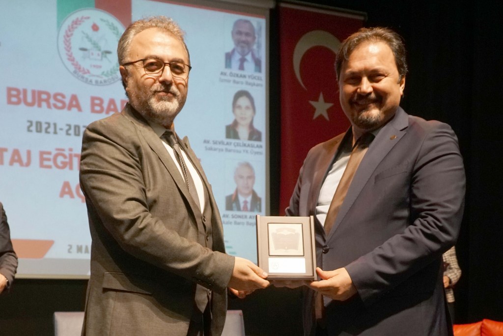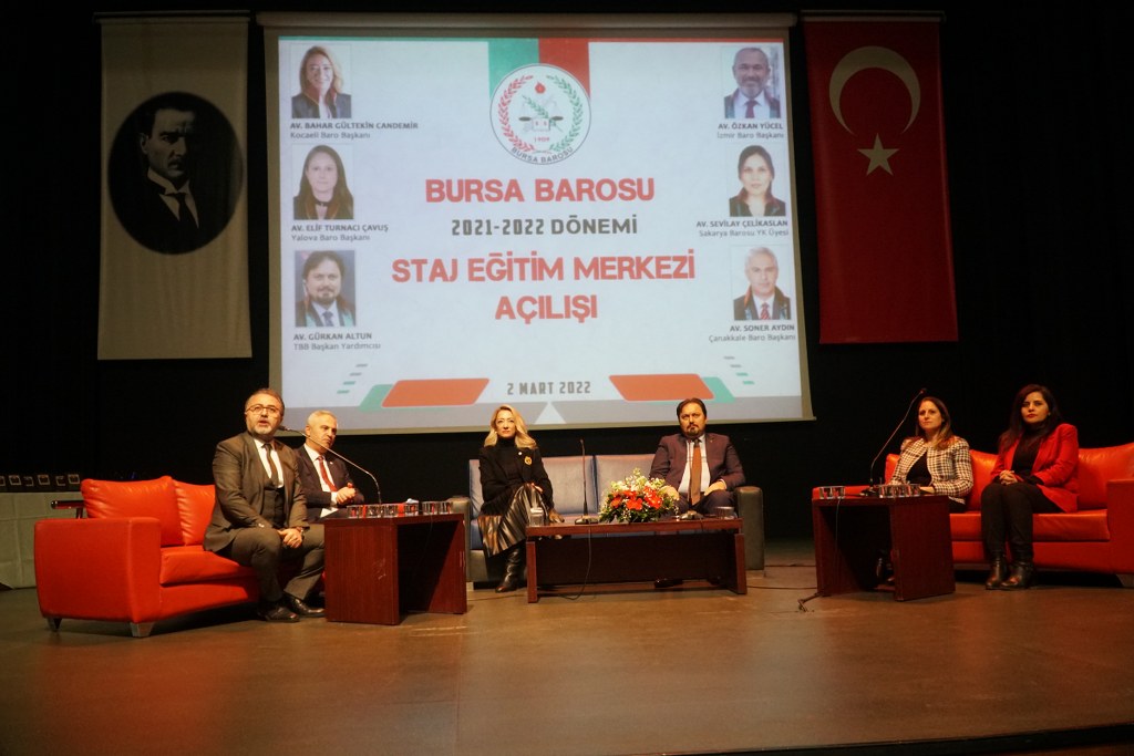 Bursa Barosu 2021-2022 Dönemi Staj Okulu 587 stajyerle, TBB Başkan Yardımcısı Av. Gürkan Altun, Kocaeli Barosu Başkanı Av. Bahar Gültekin Candemir, Çanakkale Barosu Başkanı Av. Soner Aydın, Yalova Barosu Başkanı Av. Elif Turnacı Çavuş ve Sakarya Barosu Yönetim Kurulu Üyesi Av. Sevilay Çelikaslan'ın katılımıyla açıldı.
