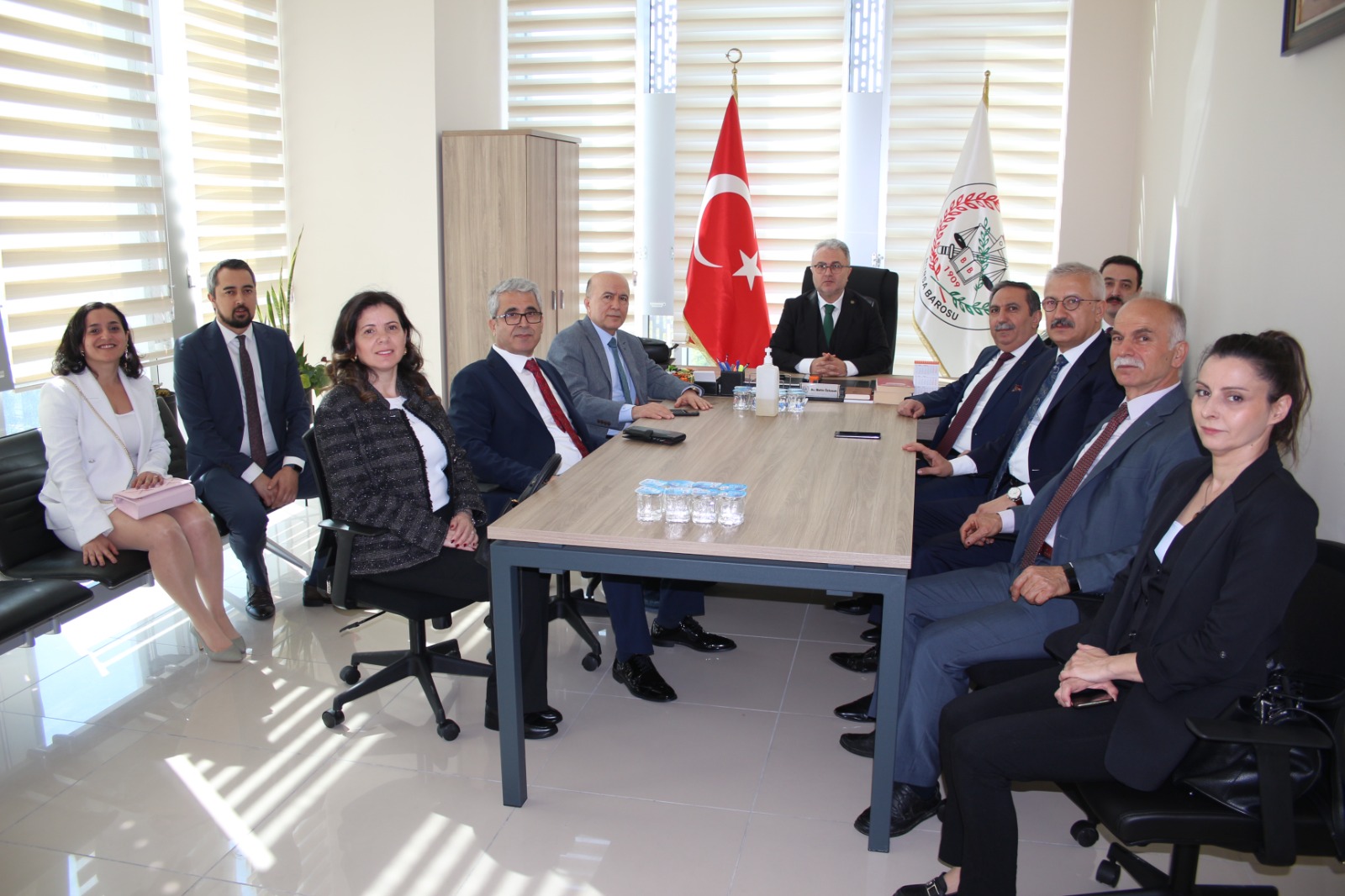 Bursa Cumhuriyet Başsavcısı Ramazan Solmaz, BAM Başkanı Abdülkadir Şahin, BAM Cumhuriyet Başsavcısı Sadık Bölek, BİM Başkanı Mahmut Şahin ve başsavcı yardımcıları Bursa Barosu Başkanı Av. Metin Öztosun'u BAM'daki baro yönetim ofisinde ziyaret ettiler. Kutlama ziyaretinde Bursa Barosu Başkan Yardımcısı Av. Aslı Evke Yetkin, sayman Av. Özge Yılmaz Türker, yönetim kurulu üyeleri Av. Umut Mısır ve Av. Gülender Adıgüzel de bulundu.