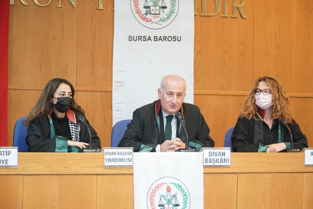 Divan heyetini görevi sona erdikten sonra kürsüye gelen Bursa Barosu Başkanı Av. Gürkan Altun, bir dönemi daha başlattıklarını belirterek “Gerçi yarım dönem bu. Fazladan yaptırılan bir dönem vardı, şimdi de eksik bir dönemimiz var. Kendi fazlamız kendi eksiğimizi tamamlayacak ve bir dönemi bitirmiş olacağız. 1.5 yıla yakındır meslektaşım ve yönetim, denetim ve disiplin kurulu, TBB delegesi ve yönetim kurulu genç temsilci adayları sahadaydı. Çalıştılar, sorunları tespit ettiler, çözüm önerilerine yönelik görüşlerini dile getirdiler. Önceden planladığımız yapacaklarımızın yanında bunlar da yol haritamızı oluşturacak” dedi.