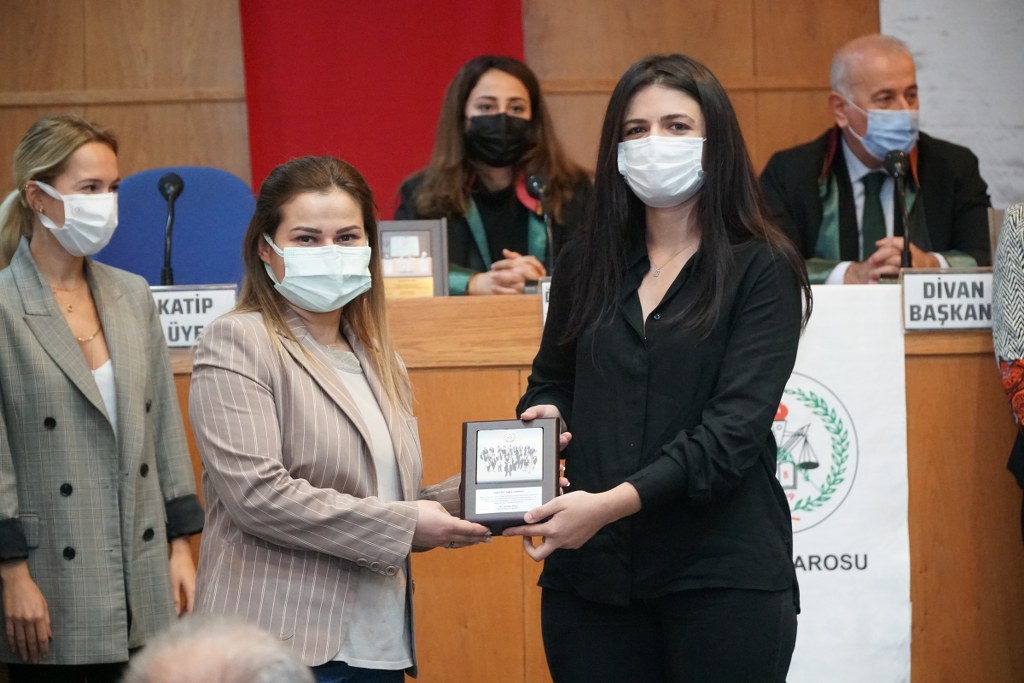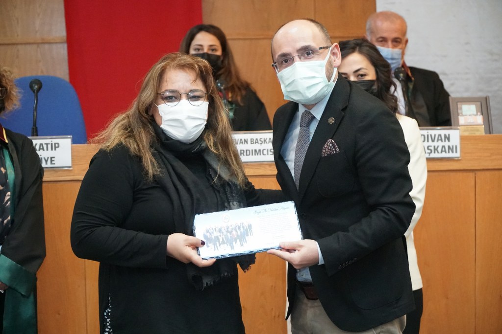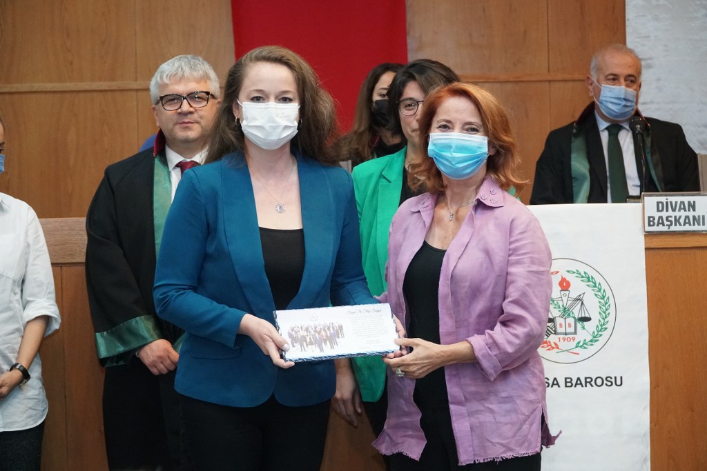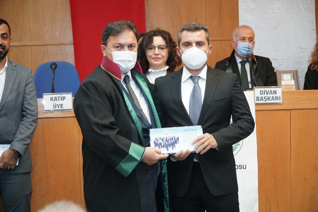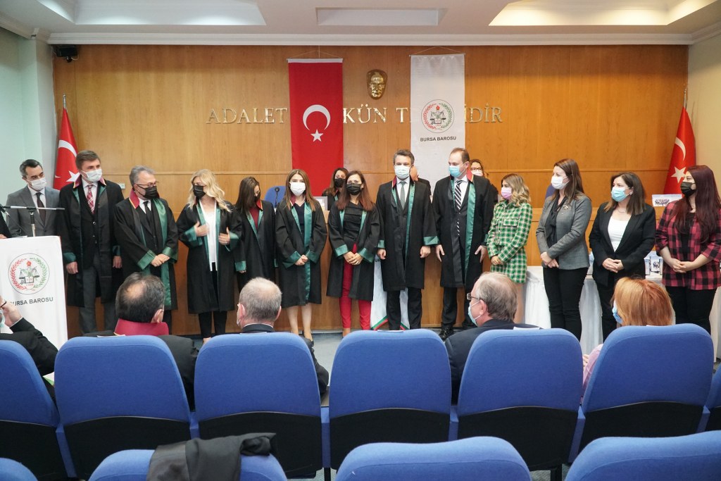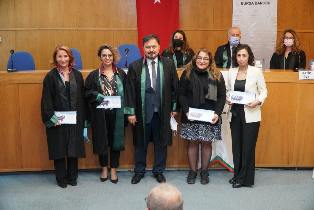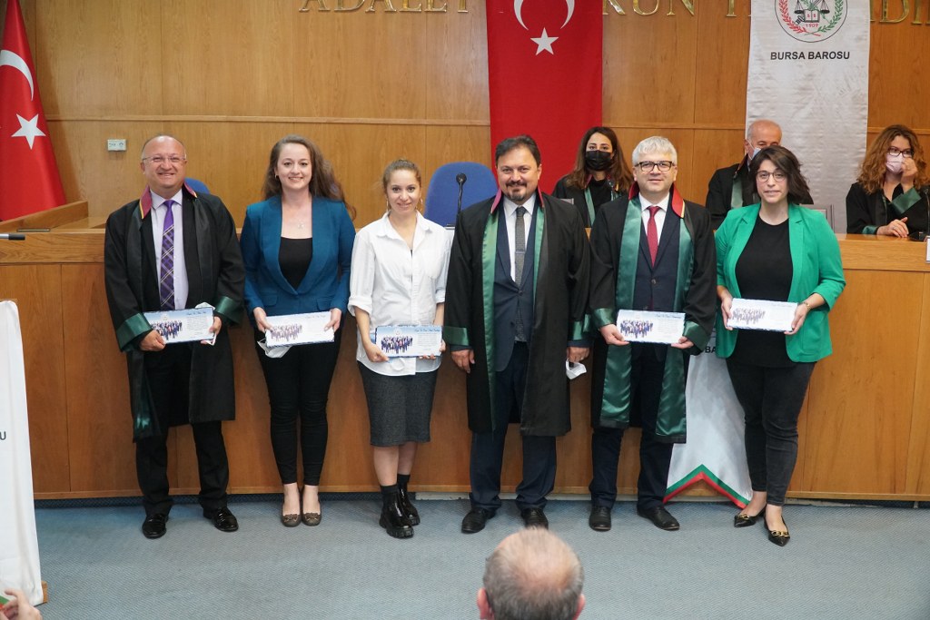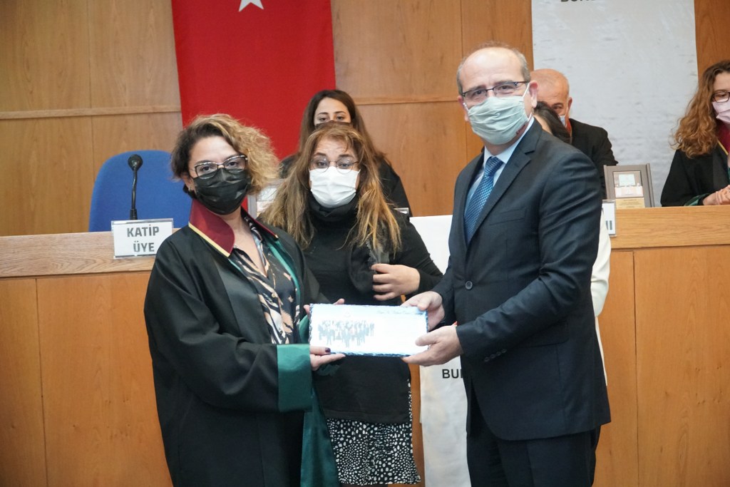 Konuşmaların ardından, yönetim, denetleme, disiplin kurullarının üyeleri ile TBB delegeleri arasında görev devir teslimi yapıldı. Önceki dönem kurul üyeleri, TBB delegeleri ve yönetim kurulu genç temsilcilerine Bursa Barosu'nca hazırlanan plaketler verildi.