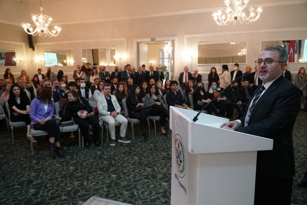 Törende plaketleri Bursa Barosu Başkanı Av. Metin Öztosun, yönetim kurulu üyeleri ve baro önceki başkanları verirken, Başkan Öztosun meslektaşlarına hitaben konuşmasına, Melih Cevdet Anday'ın “Sis Çanı” şiiriyle başladı.
