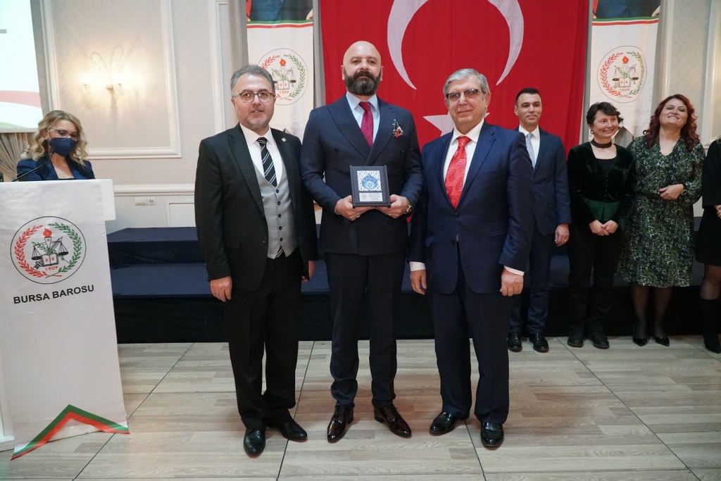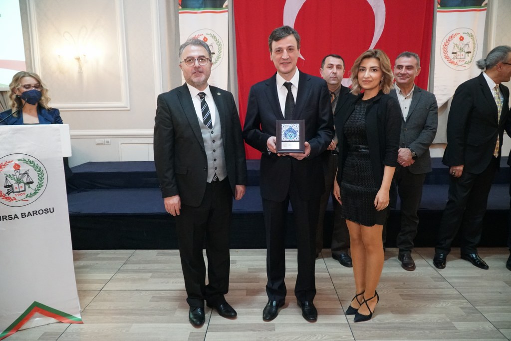 Bursa Barosu'nun, ülkemizin her döneminde hukukun üstünlüğünden ödün vermeden yürüttüğü mesleki mücadelenin de bir üyesi, yürütücüsü ve icracısı olduğunuz için sizi ayrıca kutluyor;