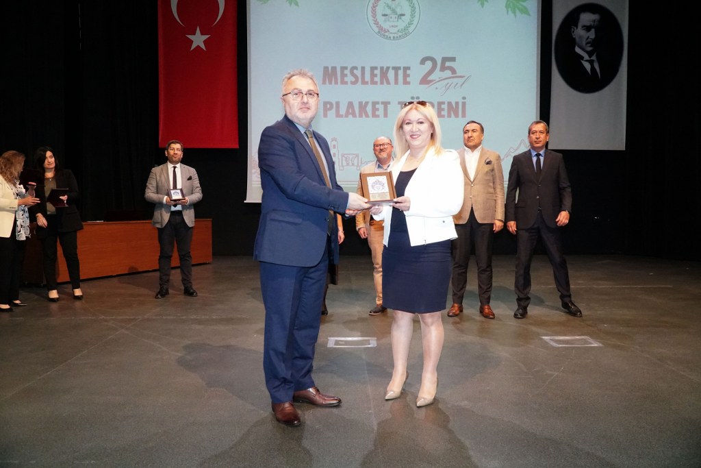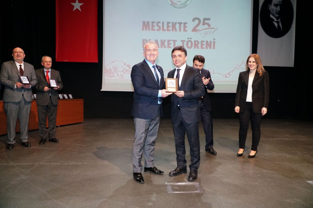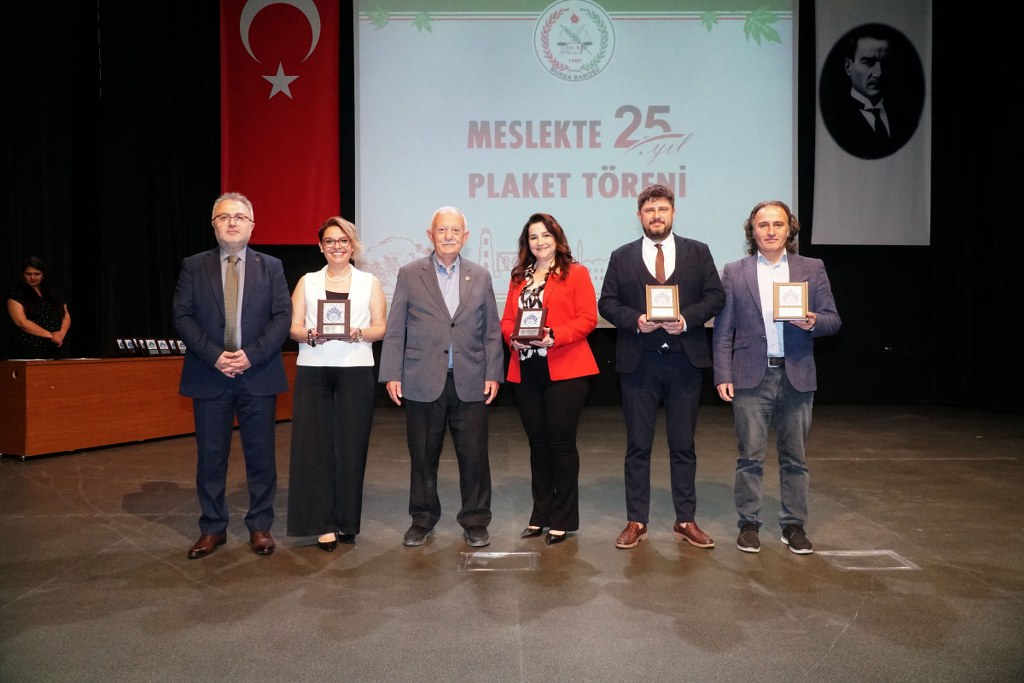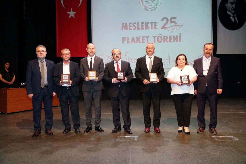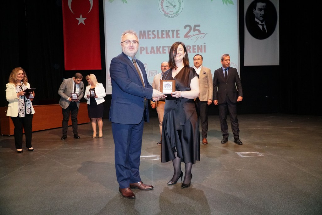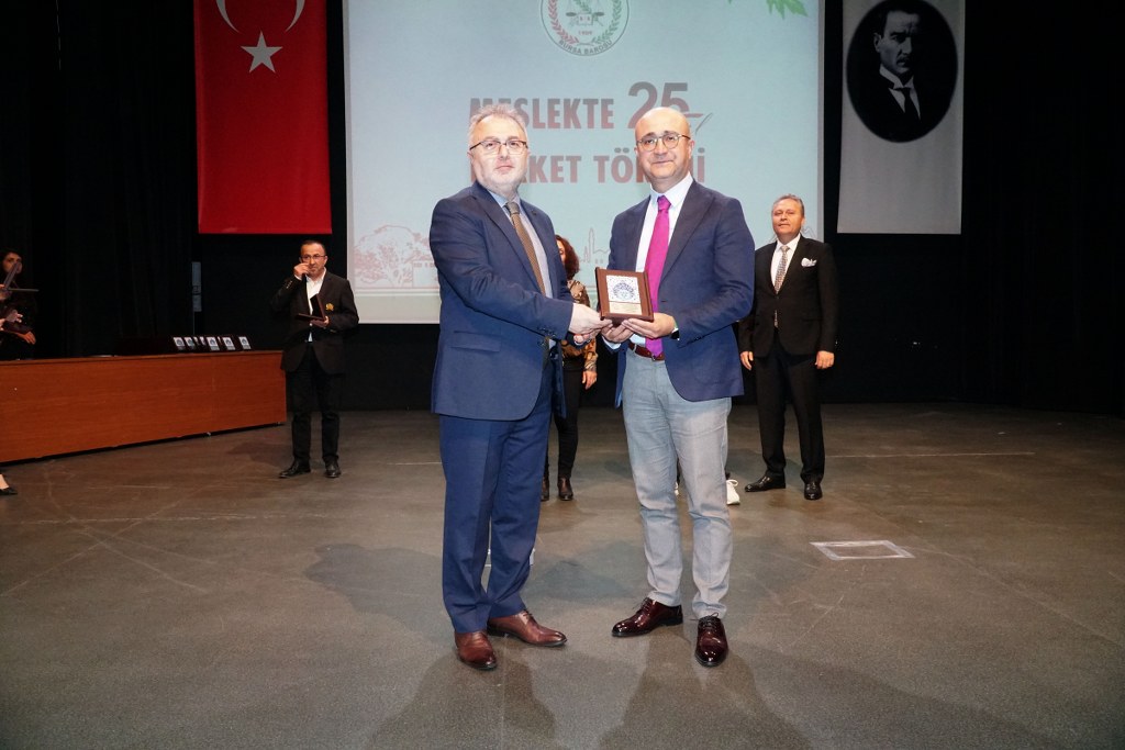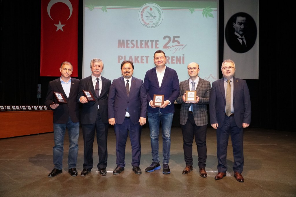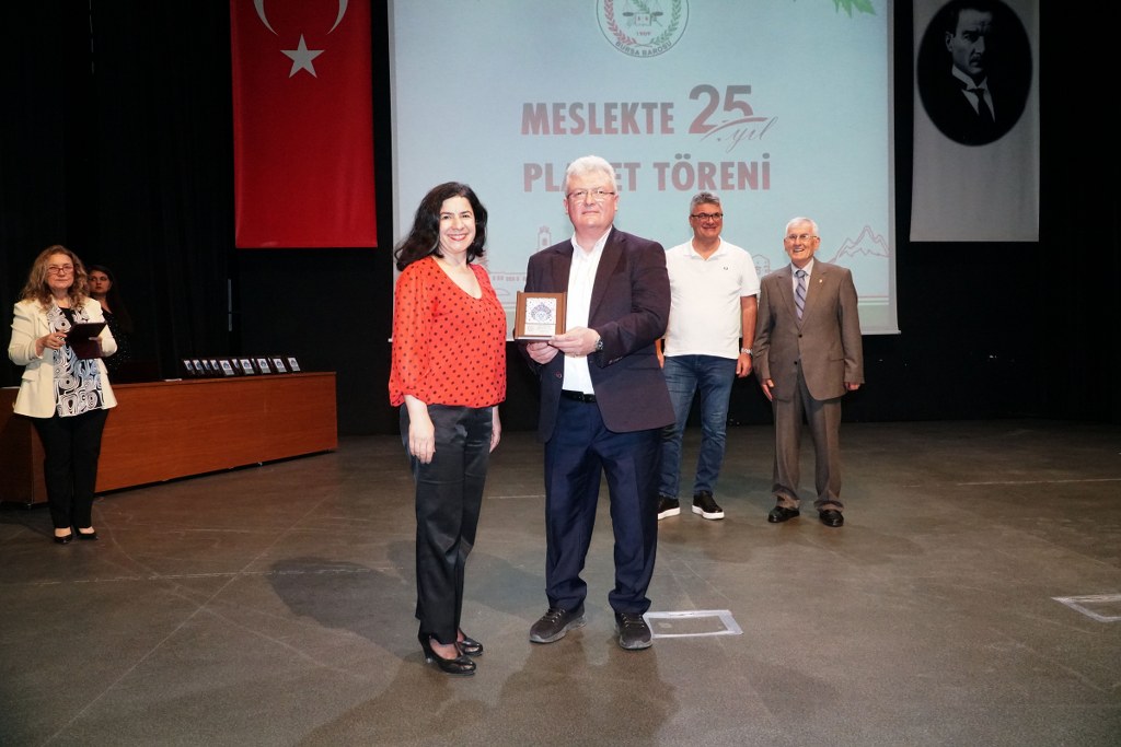 Sunumu yönetim kurulu üyesi Umut Mısır'ın yaptığı törende daha sonra gruplar halinde sahneye davet edilen avukatlara plaketleri Bursa Barosu Başkanı Metin Öztosun, TBB Başkan Yardımcısı Gürkan Altun, önceki başkanlar İsmail Hakkı Acar, Asude Şenol, Zeki Kahraman, Ekrem Demiröz, Bursa Barosu Başkan Yardımcısı Aslı Evke Yetkin, yönetim kurulu üyeleri Özge Yılmaz Türker, İsmail İşel, Müberra Gülen Aydın ve Av. Ekrem Tekin tarafından verildi.