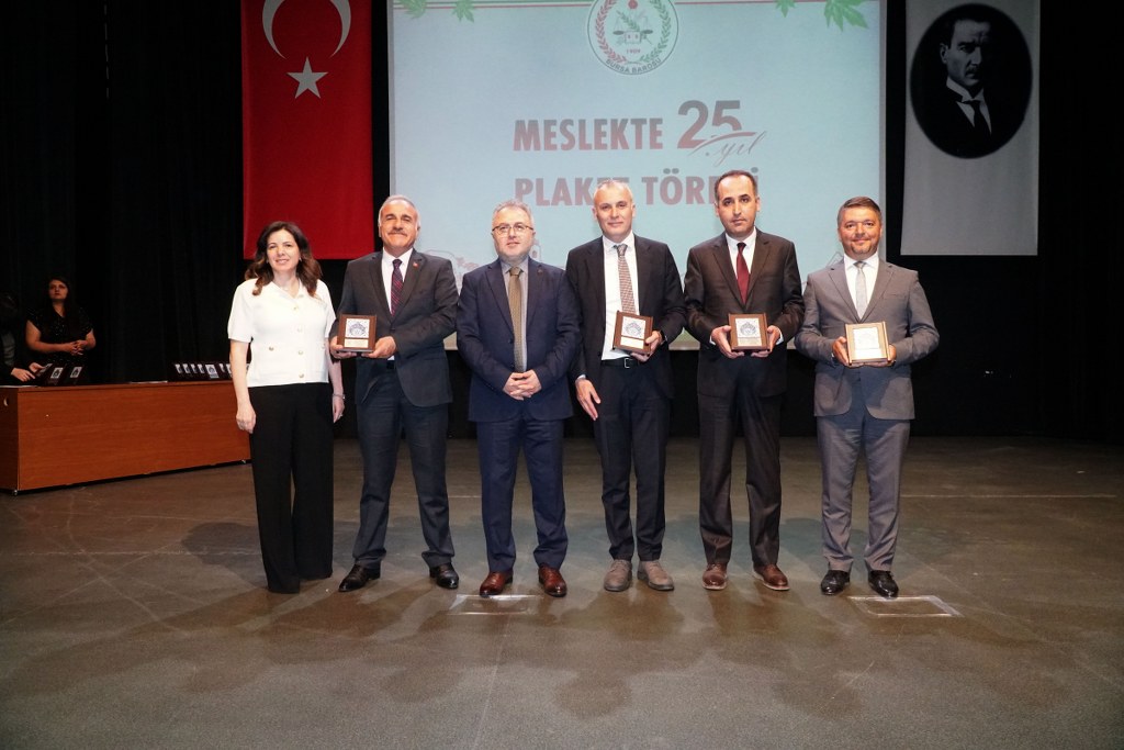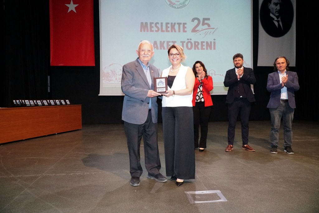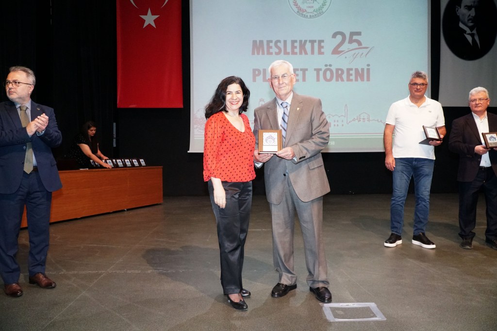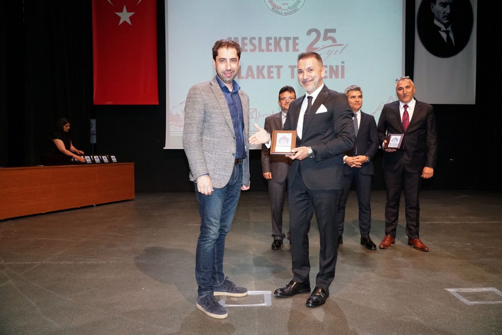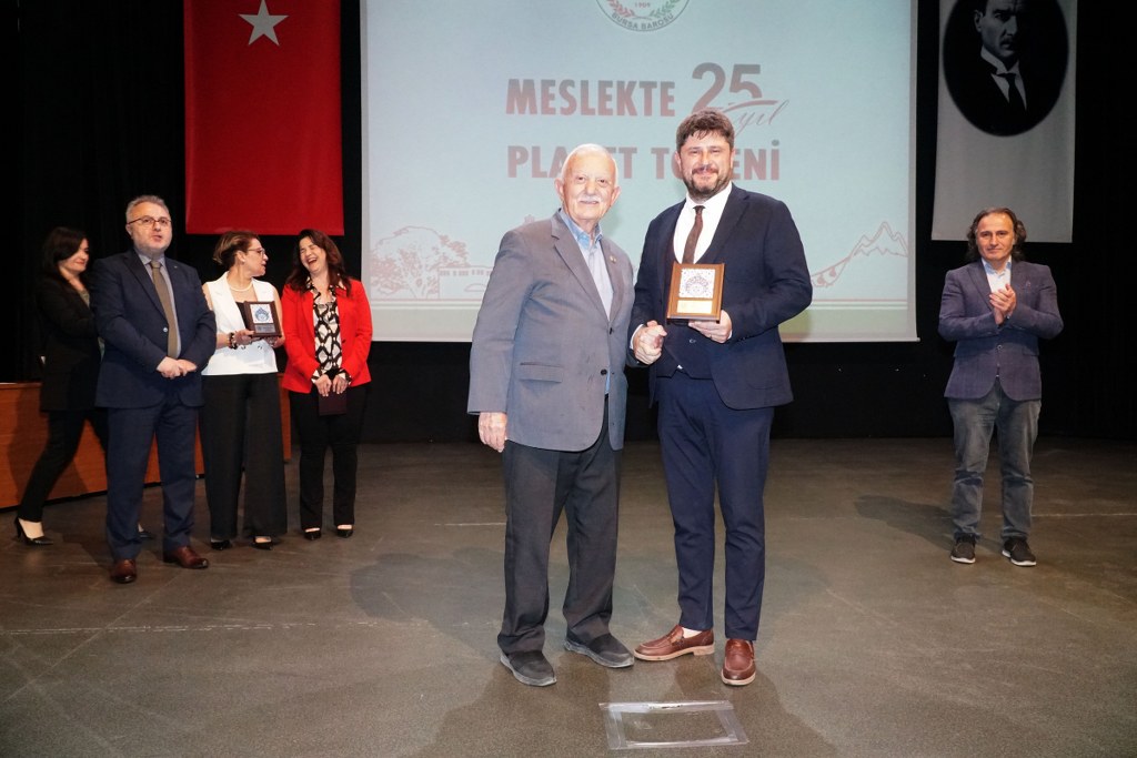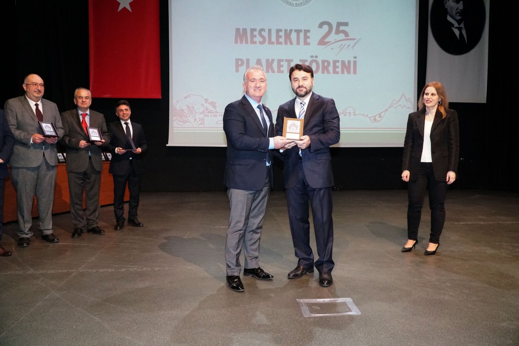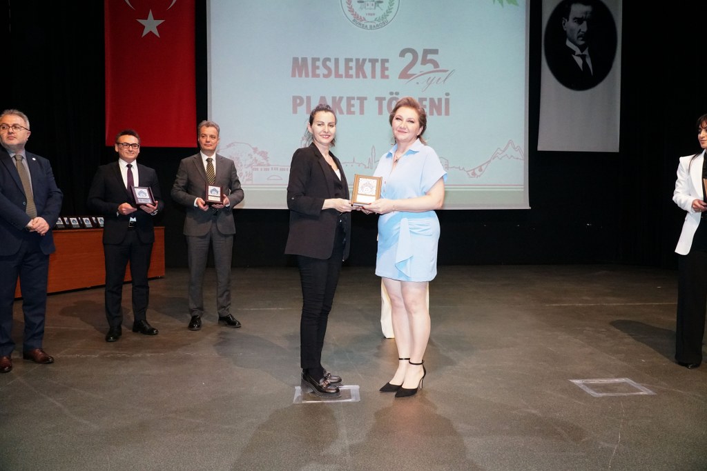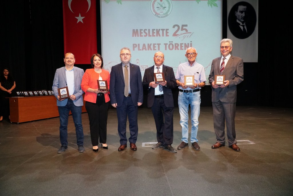 Sunumu yönetim kurulu üyesi Umut Mısır'ın yaptığı törende daha sonra gruplar halinde sahneye davet edilen avukatlara plaketleri Bursa Barosu Başkanı Metin Öztosun, TBB Başkan Yardımcısı Gürkan Altun, önceki başkanlar İsmail Hakkı Acar, Asude Şenol, Zeki Kahraman, Ekrem Demiröz, Bursa Barosu Başkan Yardımcısı Aslı Evke Yetkin, yönetim kurulu üyeleri Özge Yılmaz Türker, İsmail İşel, Müberra Gülen Aydın ve Av. Ekrem Tekin tarafından verildi.