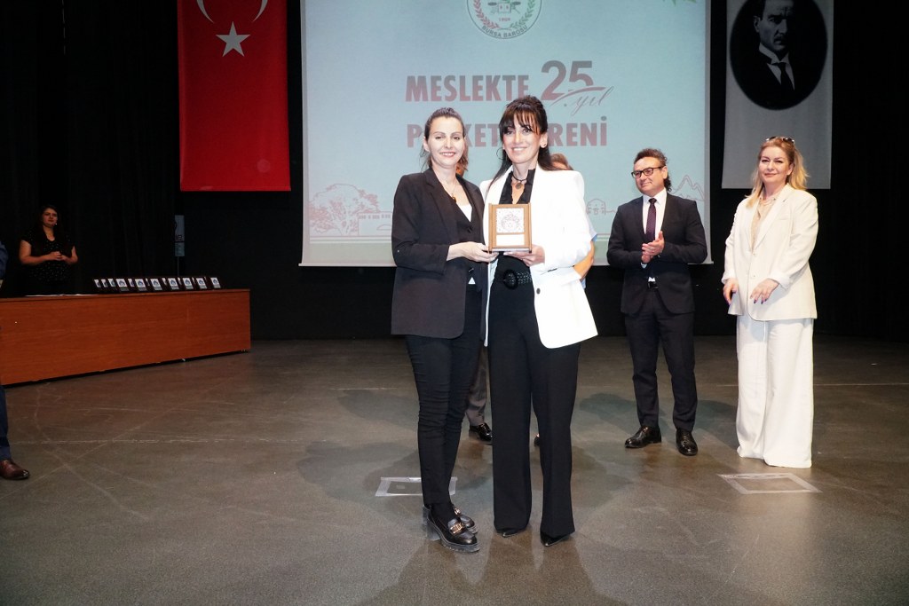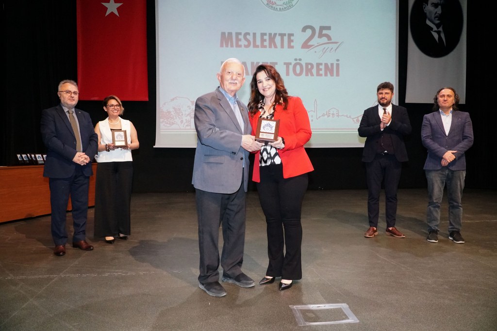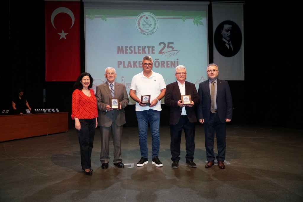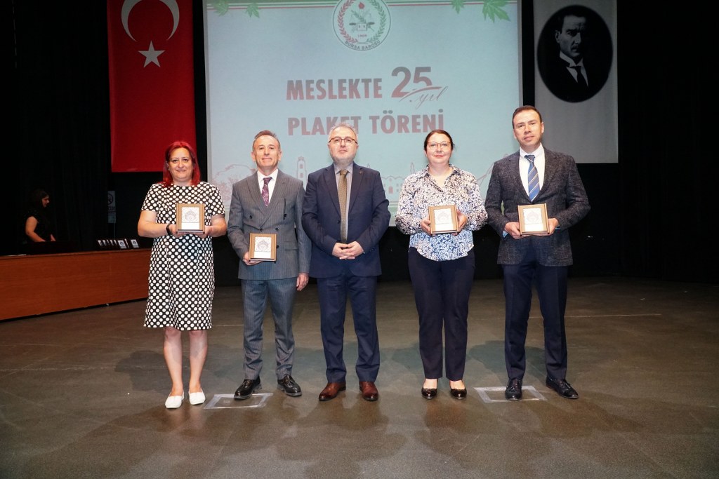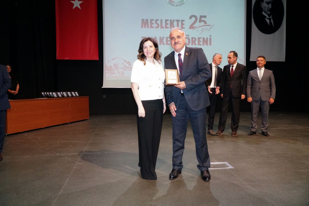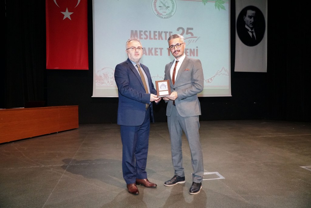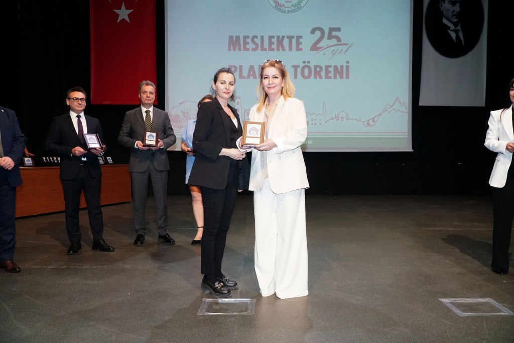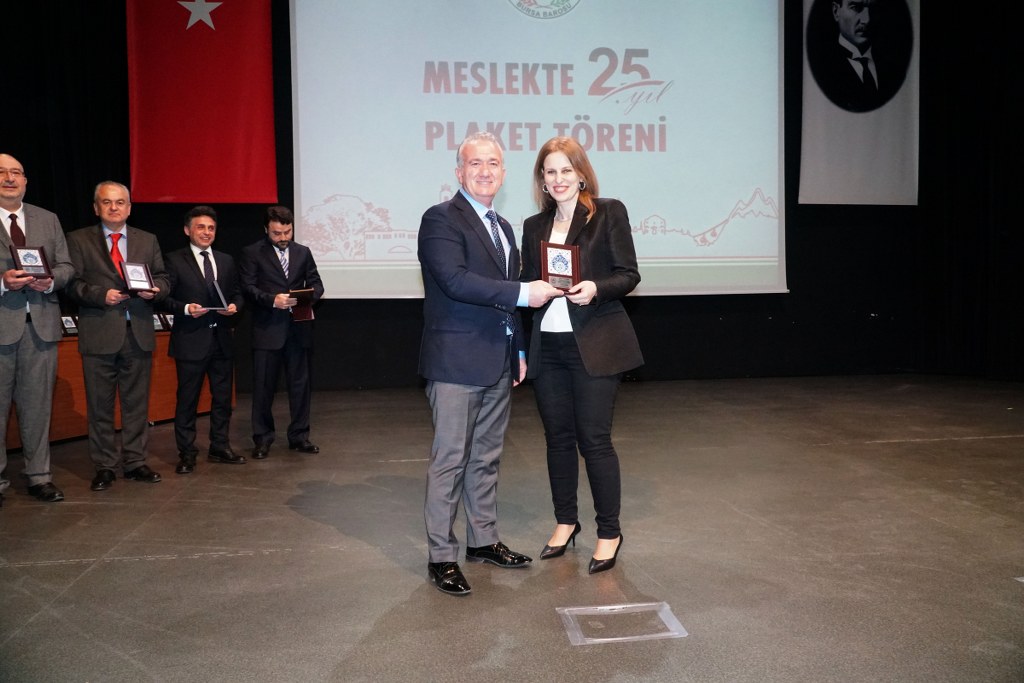 Sunumu yönetim kurulu üyesi Umut Mısır'ın yaptığı törende daha sonra gruplar halinde sahneye davet edilen avukatlara plaketleri Bursa Barosu Başkanı Metin Öztosun, TBB Başkan Yardımcısı Gürkan Altun, önceki başkanlar İsmail Hakkı Acar, Asude Şenol, Zeki Kahraman, Ekrem Demiröz, Bursa Barosu Başkan Yardımcısı Aslı Evke Yetkin, yönetim kurulu üyeleri Özge Yılmaz Türker, İsmail İşel, Müberra Gülen Aydın ve Av. Ekrem Tekin tarafından verildi.