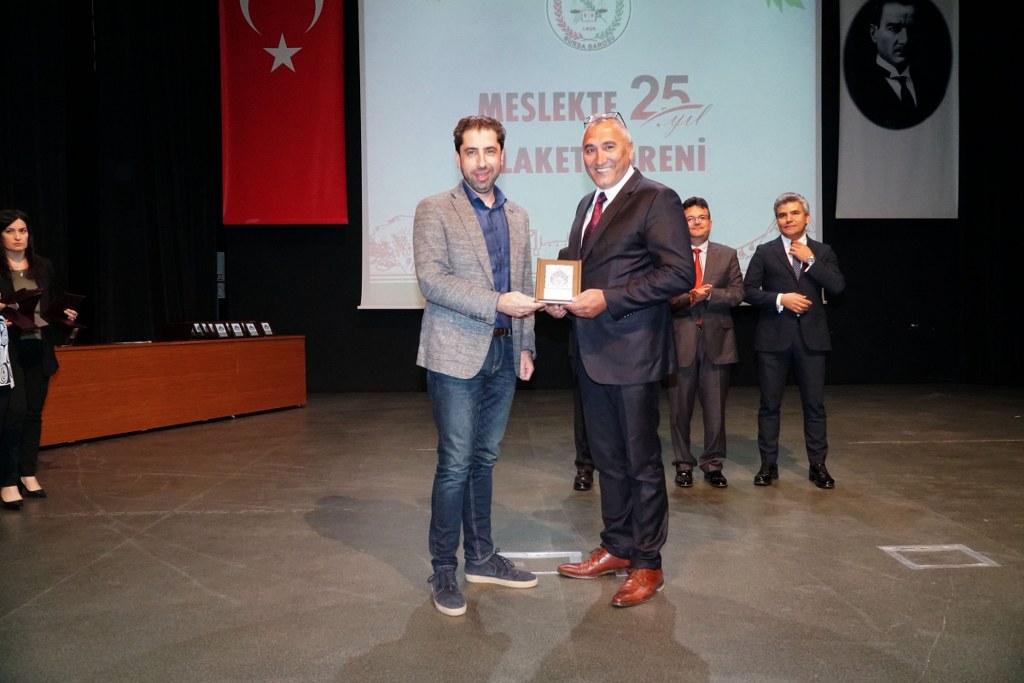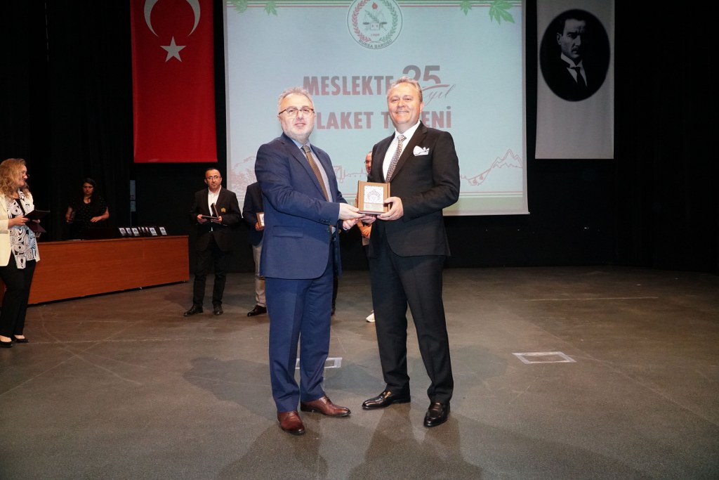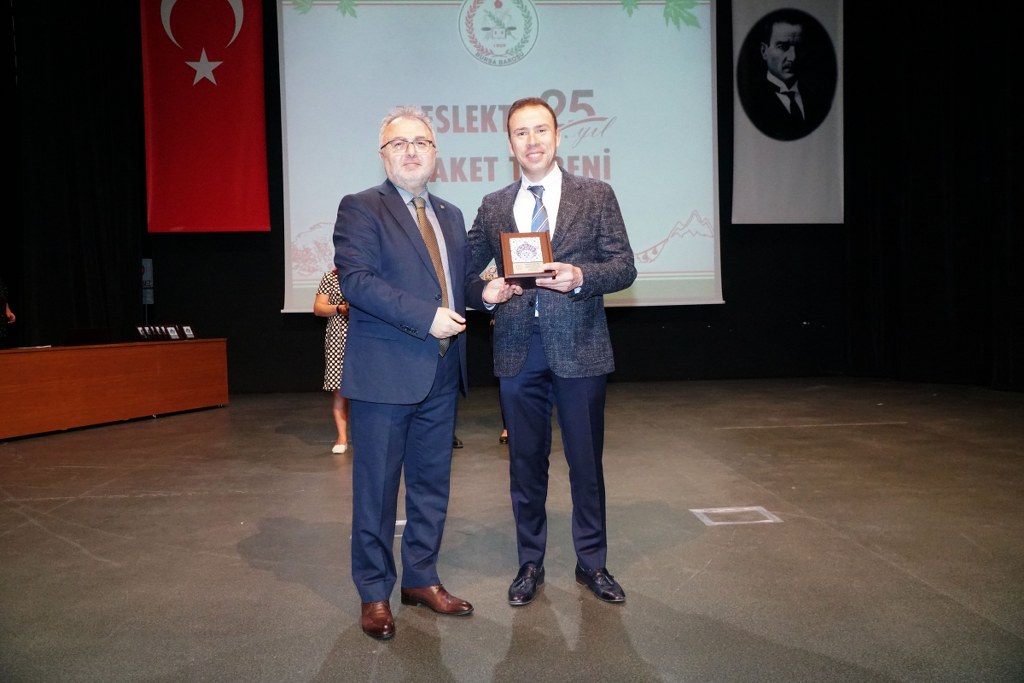 Plaket töreni sırasında kısa bir konuşma yapan TBB Başkan Yardımcısı Av. Gürkan Altun da, Bursa Barosu'nun 115 yaşına bastığını hatırlatarak, “Bursa Barosu başkanlığı yapma fırsatı bulmuş olmam son derece onur verici. Bugün bulunduğum görevin gelecekte benim için pek önemi olmayacak ama Bursa Barosu Başkanı unvanını ölene kadar onurla gururla taşıyacağım” diye konuştu.