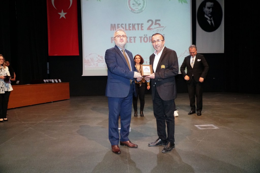 Törenin açılışında konuşan Bursa Barosu Başkanı Av. Metin Öztosun, meslekte 25 yılını tamamlayan meslektaşlarına seslenirken, ülkemizin çağdaş hukuk normlarına ulaşması için verdikleri mücadele dolu 25 yılın her türlü takdirin üzerinde olduğunu söyledi. Öztosun, “Bursa Barosu'nun ülkemizin her döneminde hukukun üstünlüğü ilkesinden ödün vermeden yürüttüğü mesleki mücadelenin bir üyesi ve icracısı olduğunuz için sizleri ayrıca kutluyorum. 25. yılınızda mesleğe yeni başladığınız günlerdeki heyecan, umut ve değeri hiçbir şeyle ölçülemeyecek olan tecrübenizle, yeni mücadelelere hep beraber sağlıkla, huzurla devam etmenizi diliyorum. İkinci 25 yılda, belki üçüncü 25 yılda tekrar bir arada olmak dileğiyle saygı ve sevgiyle selamlıyorum” dedi. Öztosun'un, avukatlık andı içme daveti üzerine tüm avukatlar yemin tazeledi.
