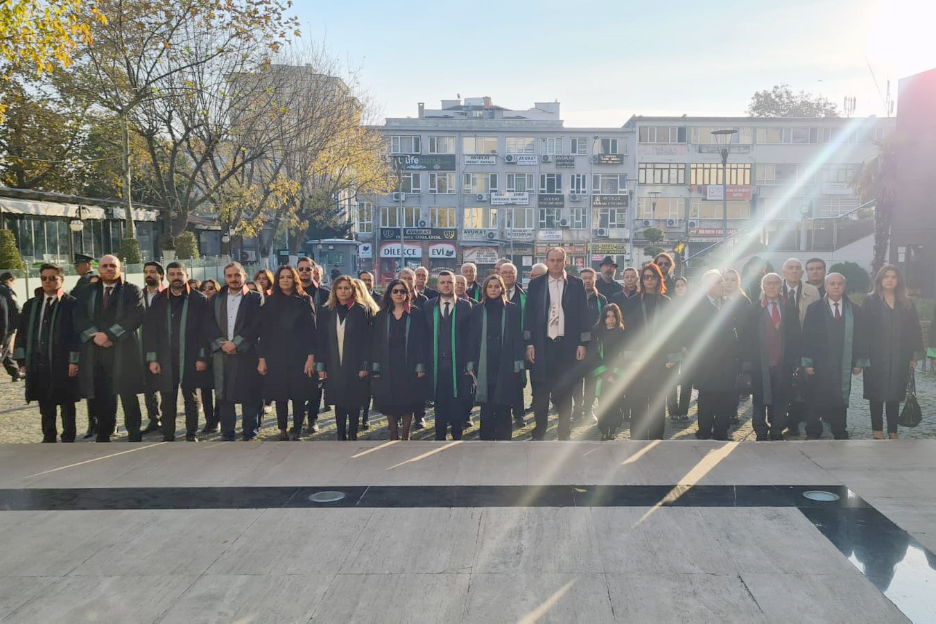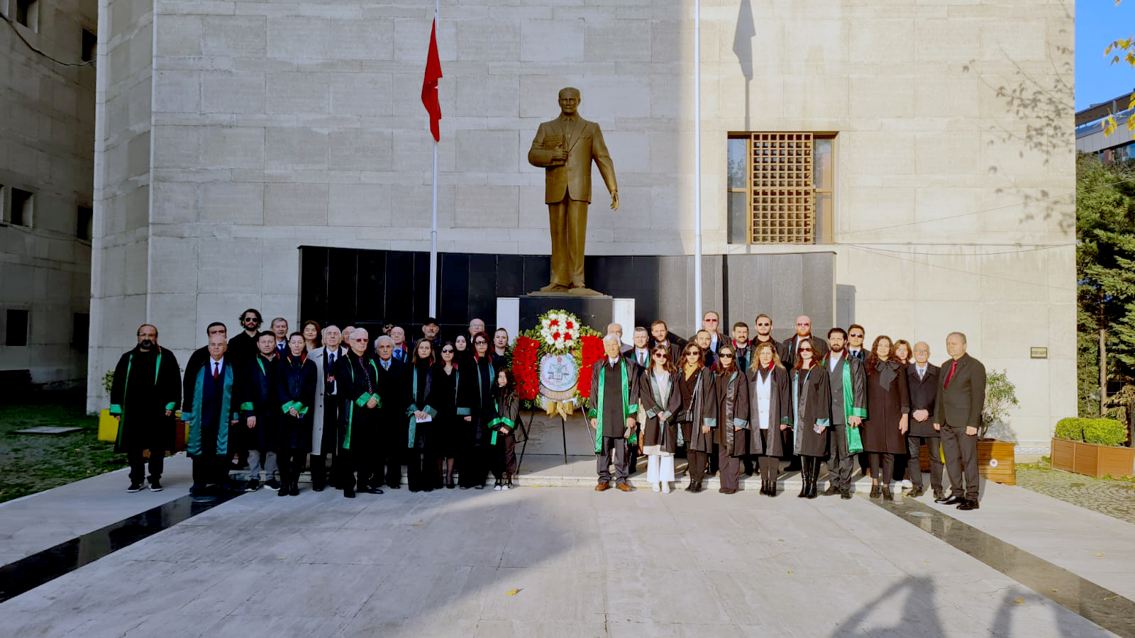 Bursa Barosu Başkan Yardımcısı Av. Aslı Evke Yetkin, Adalet Sarayı bahçesindeki anıta çelenk sundu ve Atatürk'ün hayata gözlerini yumduğu saat 09.05'te çalan sirenler eşliğinde saygı duruşunda bulunuldu. Ardından İstiklal Marşı okundu.