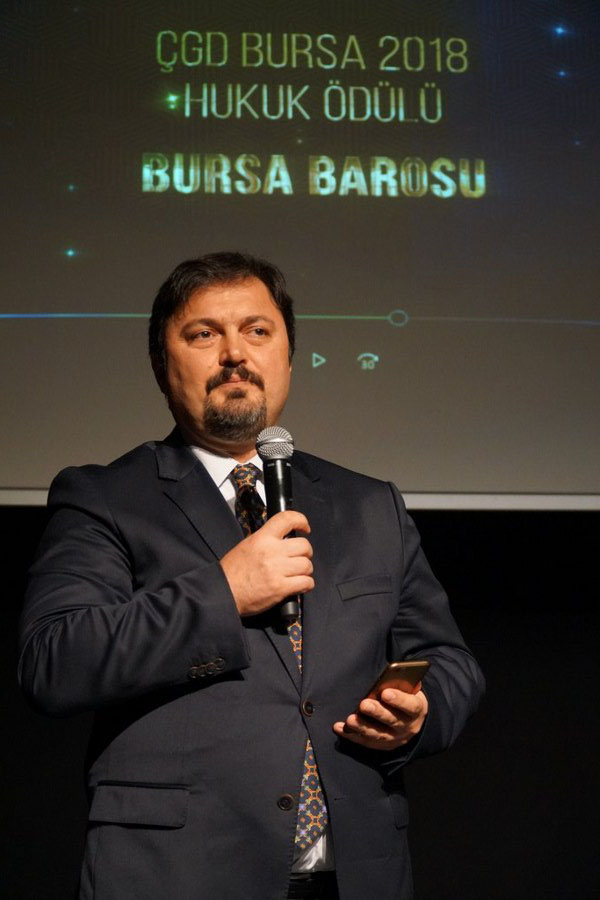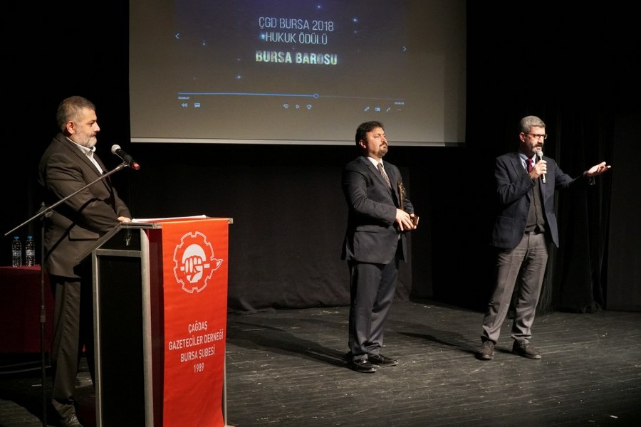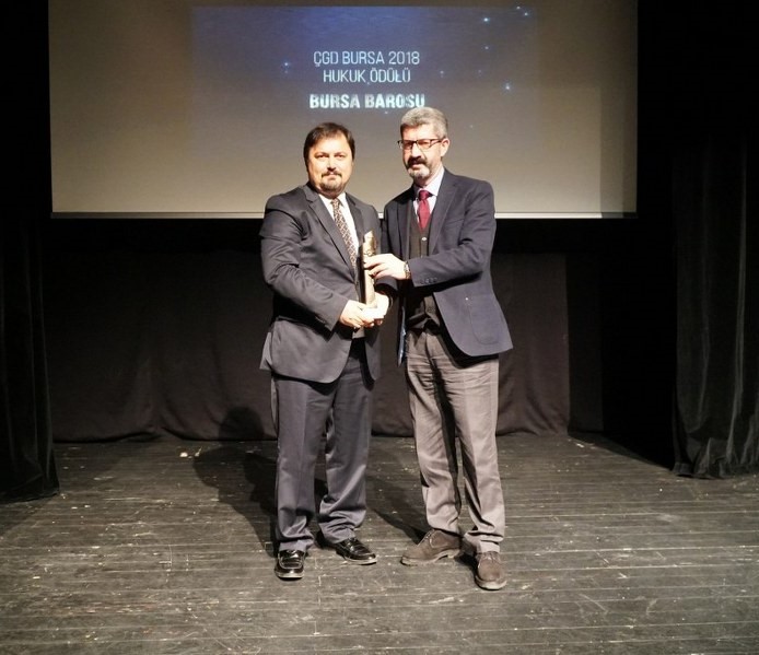 Bursa Barosu, Çağdaş Gazeteciler Derneği (ÇGD) Bursa Şubesi'nin 2 Kasım 2018 Pazar akşamı düzenlediği ödül töreninde Hukuk Ödülü'ne layık görüldü