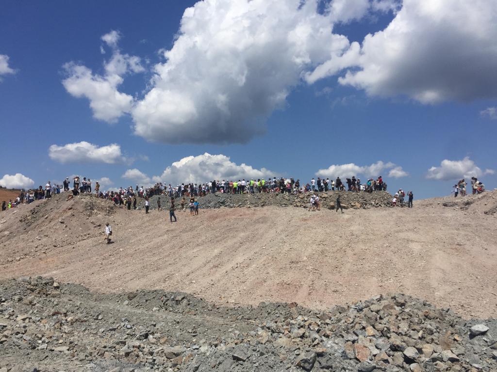 Maden sahasına doğru giden binlerce kişi, şantiye giriş kapısındaki güvenlik görevlileriyle önce kısa bir arbede yaşadı. Ancak içeri girmek isteyen binlerce yurttaşın baskısı sonuç verdi ve kapılar açıldı. İçeri giren binlerce kişi, ağaç katliamının yapıldığı yerde fidan dikiyor. Bölgede ayrıca hasar tespit çalışması da yapılacağı bildirildi.