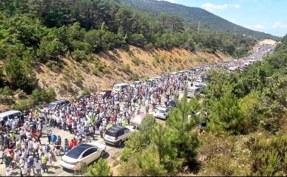 Sabah saatlerinden itibaren bölgede toplanan binlerce çevreci yurttaş, ağaç katliamı yapılan alana doğru yürüdü.