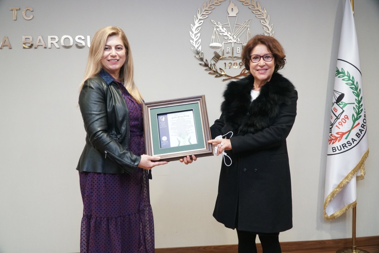 Bursa Barosu'nun 20 yılı aşan Cargill davalarında çabaları bulunan ve bu davalarda adlarına hükmedilen tazminatı Bursa Barosu'na bağışlayan avukat ve sivil toplum kuruluşu temsilcilerine teşekkür plaket verildi.
