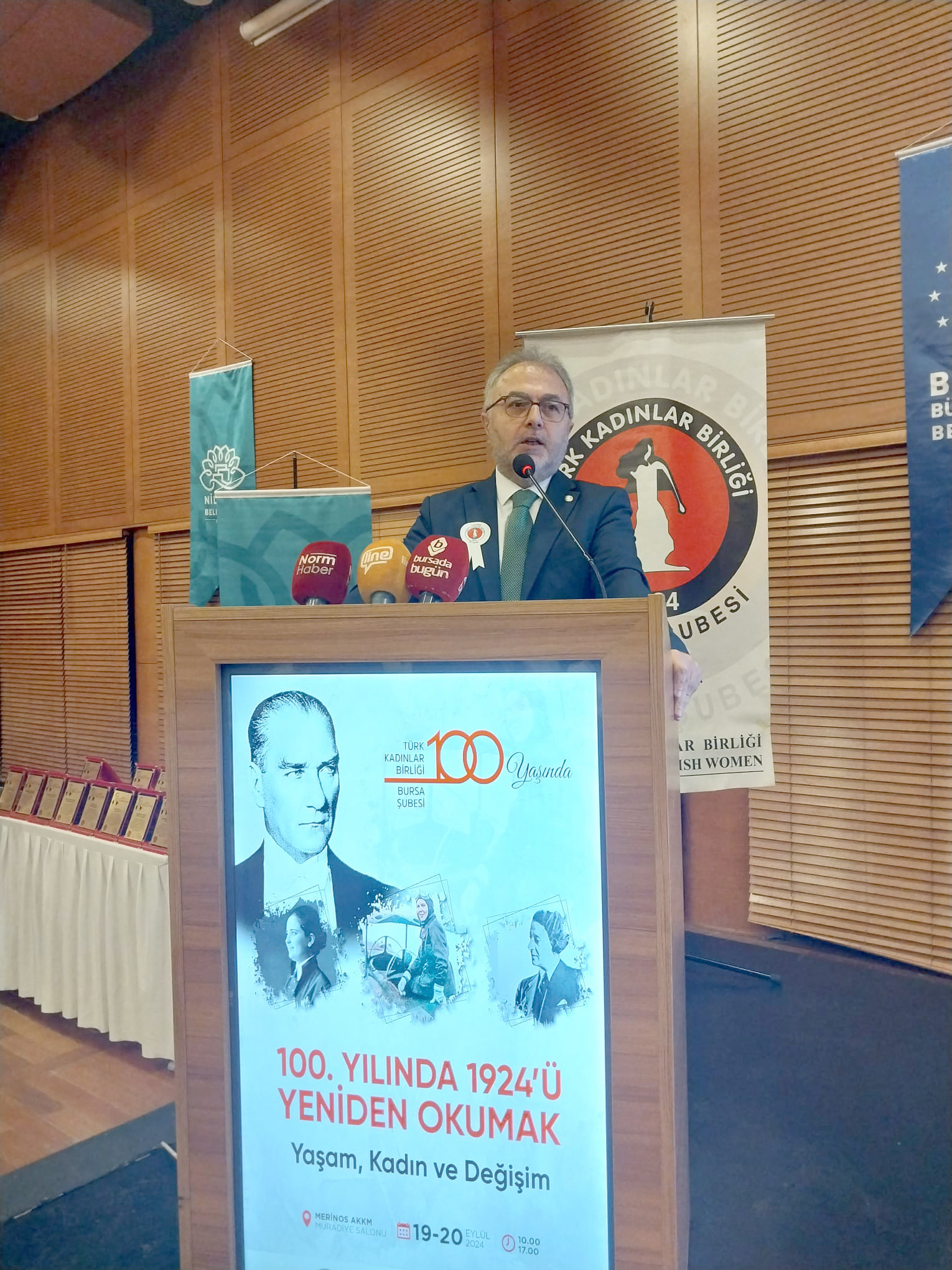 “115 yıllık hukuk çınarı Bursa Barosu ile 100 yıllık mazisi olan Türk Kadınlar Birliği aynı amaç ve hedefler doğrultusunda, Cumhuriyetin temel niteliklerini korumak ve kadın haklarının Cumhuriyetin hedeflediği seviyeye gelmesi İçin çalışmalar yapmakta. Cumhuriyetin tek kelimeyle özetlenmesi istenirse benden, Cumhuriyet okula giden kız çocuklarının gülüşüdür derdim. Ama bu gülüşün anahtarı 3 Mart 1924'te temeli atılan devrim yasaları ki, bunlar Hilafetin kaldırılması, Tevhidi Tedrisat Kanunu, Şeriye ve Evkaf Bakanlığı'nın kaldırılması… Bu üç yasa Cumhuriyetimizin yol haritasıdır. Laik, hukuk devleti yolunda üçlü sacayağıdır. Bu kanunla beraber şeyhülislamlık, şeri mahkemeler kaldırılmıştır. Kız çocukları, erkeklerle birlikte eşit eğitim imkanlarına kavuşmuşlardır. Anayasanın ilk dört maddesine saldıranlar da aslında Cumhuriyet kazanımlarına düşman olanlardır ve halen bu yasaları delmek için uğraşmaktadırlar. Bu devrim yasalarının ve cumhuriyetin temel niteliklerinin korunması ve kadın hakları için mücadele hep beraber devam edeceğiz.”