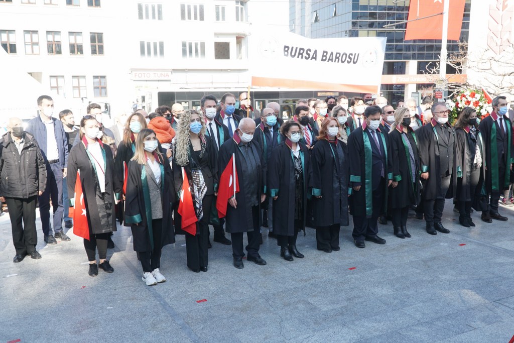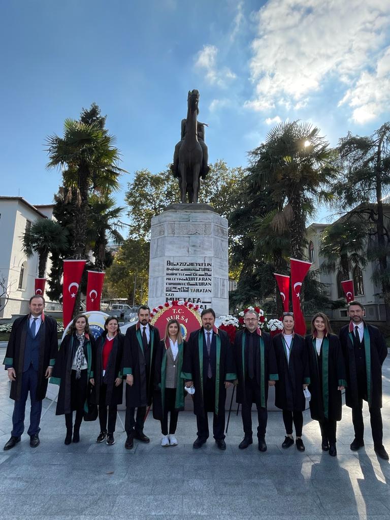 Bursa Barosu, Cumhuriyet'in 98. yaşı nedeniyle Setbaşı Mahfel önünden Cumhuriyet Alanı'ndaki Atatürk Anıtı'na yürüyüş gerçekleştirdi. “Cumhuriyeti Savunuyoruz” pankartı arkasında Setbaşı'ndan başlayan yürüyüşe Bursa Barosu Başkanı Av. Gürkan Altun, yönetim kurulu üyeleri, TBB Yönetim Kurulu Üyesi Av. Asude Şenol, önceki baro başkanları ve avukatlar cübbeleriyle katıldı. Yürüyüş sırasında avukatlar Cumhuriyet Marşı başta olmak üzere çeşitli marşlar okudu. Yürüyüşü izleyen vatandaşlar, avukatlara alkış ve tezahüratlarıyla destek verdi. Atatürk Anıtı önünde önce saygı duruşunda bulunan Bursa Barosu üyeleri, daha sonra İstiklal Marşı okudu. Atatürk Anıtı'na çelenk sunan Bursa Barosu Başkanı Altun, 29 Ekim Cuma akşamı gerçekleştirecekleri bir balo ile Cumhuriyet'in 98. yıldönümü kutlamalarını bitireceklerini söyledi ve meslektaşlarına katılımları için teşekkür etti.