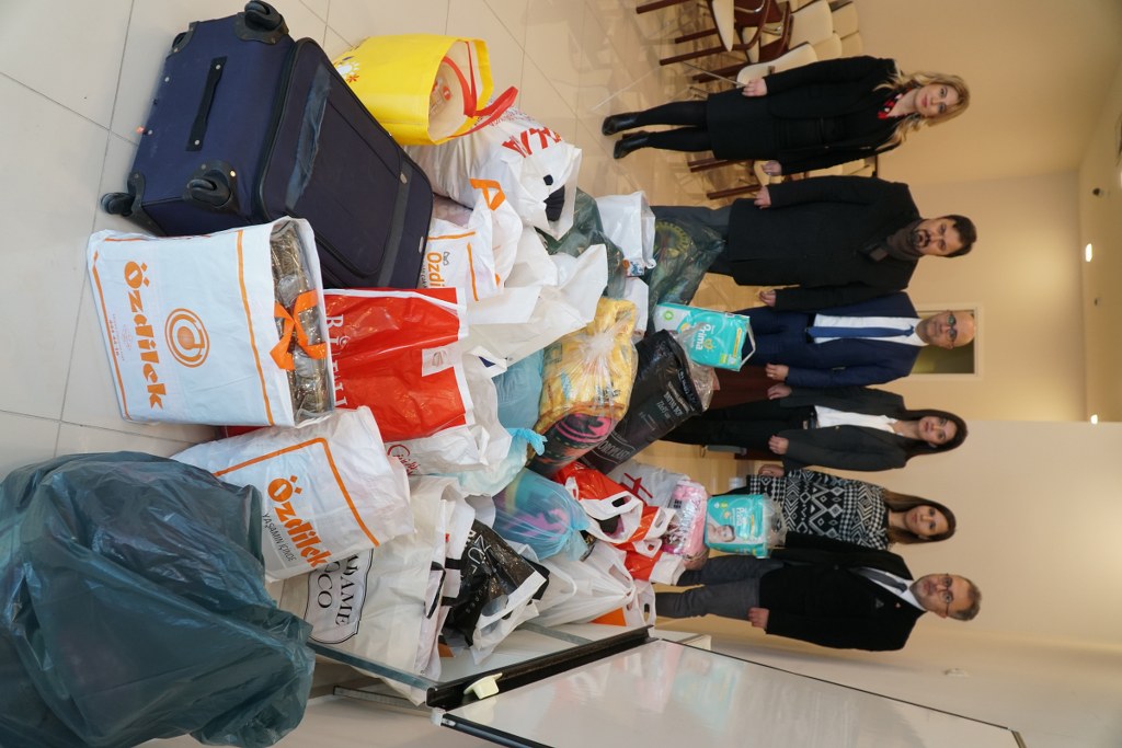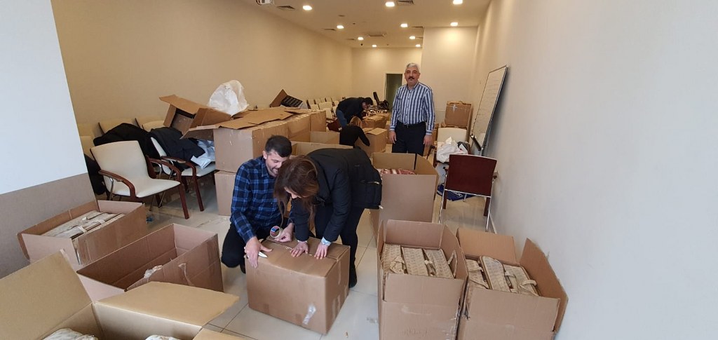 Bursalı avukatların bağışladığı yardımlar ve Bursa Barosu Başkanlığı'nın kurumsal katkıları CMK Uygulama Merkezi biriminde toplanarak hafta sonu tasnif edildi ve kolilere yerleştirildi.