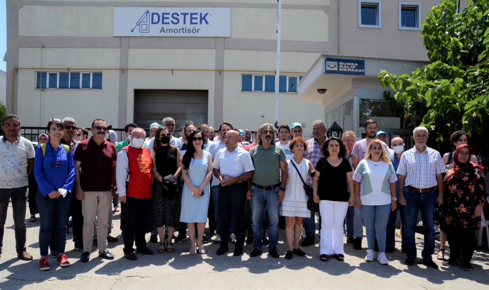 Bursa'da Destek Otomotiv fabrikasında sendikalaştıkları için işten atılan ve direnişe başlayan ve polisin müdahalesi sonucu 7'sinin yaralandığı işçilere Bursa Barosu başta olmak üzere TMMOB, KESK, TÜMTİS, Bursa Tabip Odası, Nilüfer Kent Konseyi destek ziyaretinde bulundu.