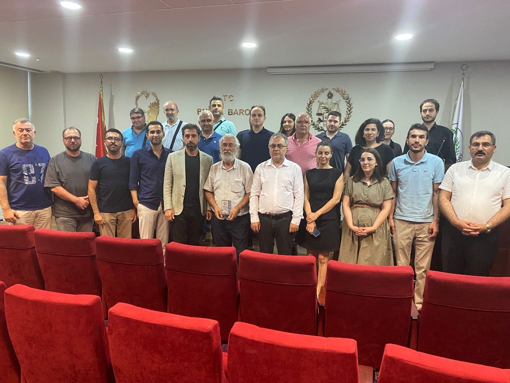Bursa Barosu İş ve Sosyal Güvenlik Hukuku Komisyonu öncülüğünde düzenlenen “Emeğin Hukuku” başlıklı konferans BAOB Av. Özgür Aksoy Konferans Salonu'nda gerçekleştirildi. Çalışma ve Toplum Dergisi Genel Yayın Yönetmeni Av. Dr. Murat Özveri'nin konferansını Bursa Barosu Başkanı Av. Metin Öztosun ile yönetim kurulu üyeleri ve avukatlar izledi. Konferans sonunda Metin Öztosun, konuşmacı Özveri'ye anı plaketi takdim etti.