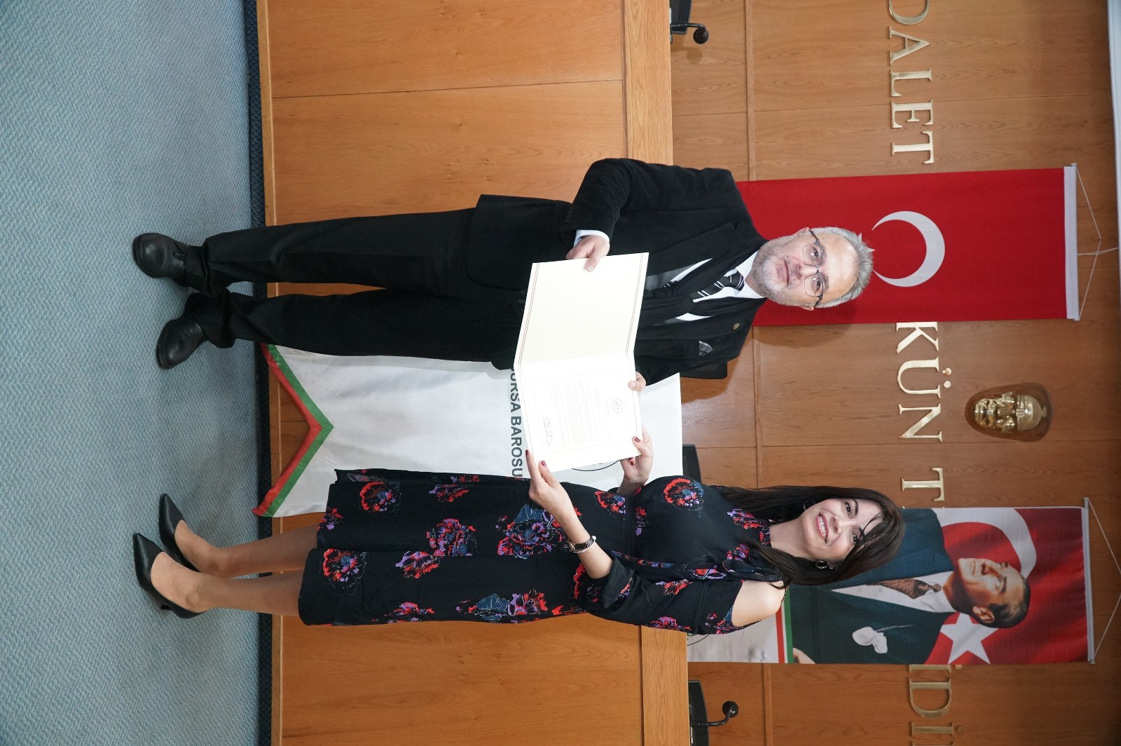Bursa Barosu Başkanlığı olarak takdire değer bulduğumuz görev bilincinizi ödüllendirmek istedik.