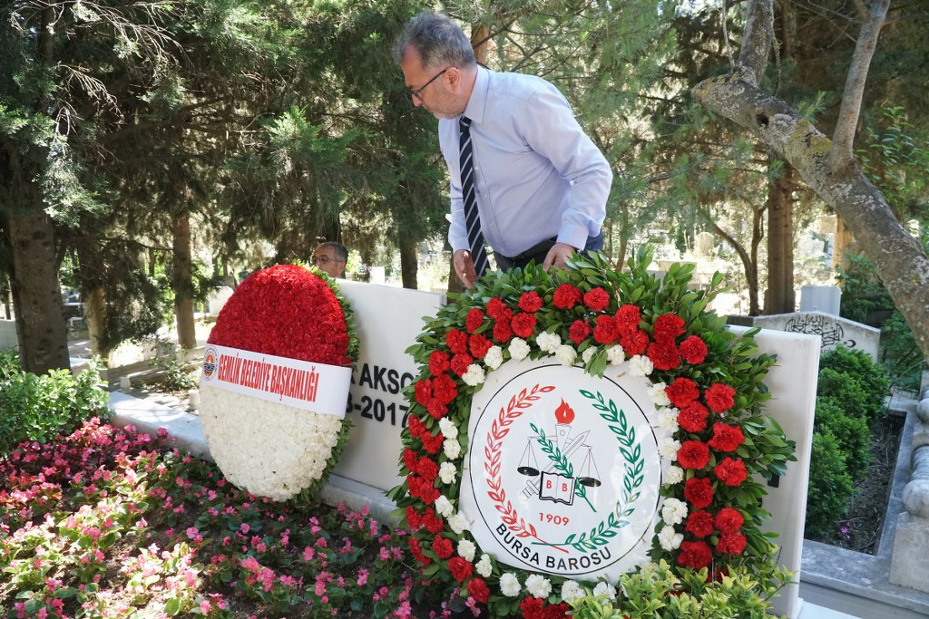 Burada da Av. Özgür Aksoy mezarı başında anıldı. Bursa Barosu Başkanı Av. Metin Öztosun, Özgür Aksoy'u anarken, birlikte tiyatro sahnesini paylaştıkları anları hatırladığını söyledi. Öztosun şöyle konuştu: