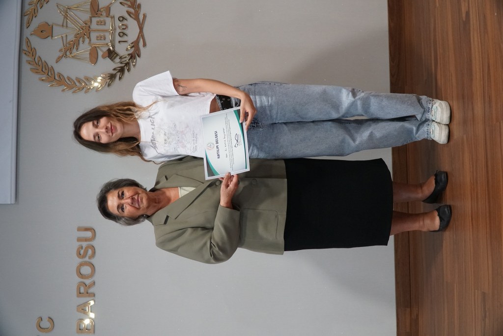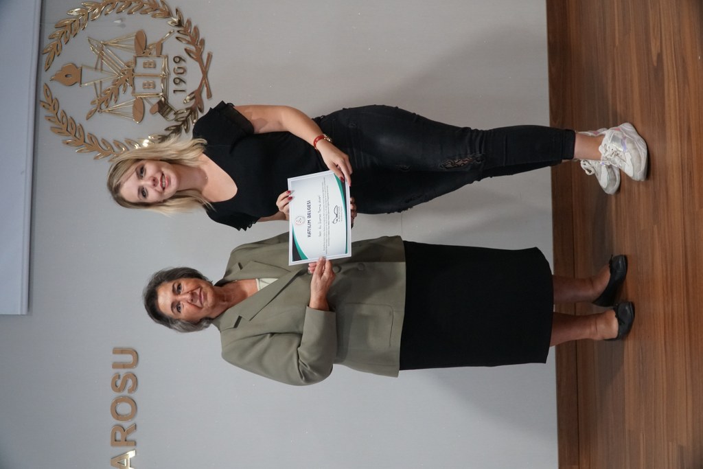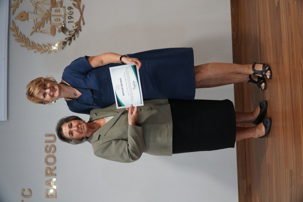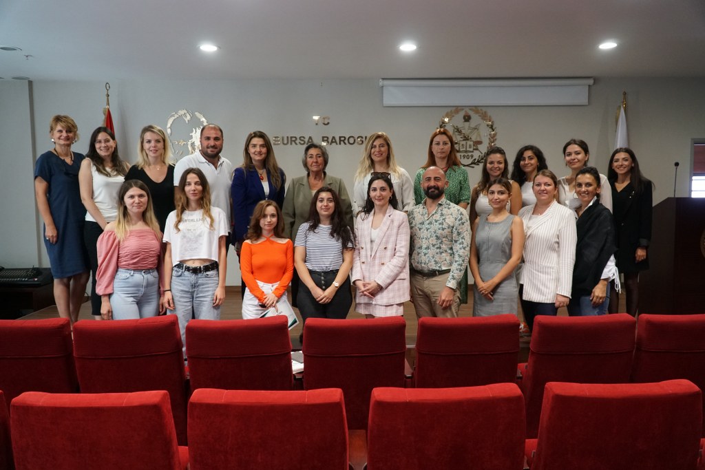 Bursa Barosu Kadın Hakları Merkezi bünyesinde, İstanbul Barosu Başkan Yardımcısı Av. Nazan Moroğlu'nun katkılarıyla düzenlenen “Kadının İnsan Hakları” konulu meslek içi eğitimi 16-17 Eylül 2022 tarihlerinde gerçekleştirildi. Bursa Barosu Kadın Hakları Merkezi üyesi 20 avukatla sınırlı tutulan eğitimin ardından katılımcılara Bursa Barosu aşkanı Av. Metin Öztosun imzalı sertifika verildi. Avukatların sertifikalarını Av. Nazan Moroğlu takdim etti. Bursa Barosu Yönetim Kurulu Üyesi Av. Nazlı Ceren Şendoğan da, konuk Moroğlu'na katkıları nedeniyle Bursa Barosu'nun plaketini sundu.