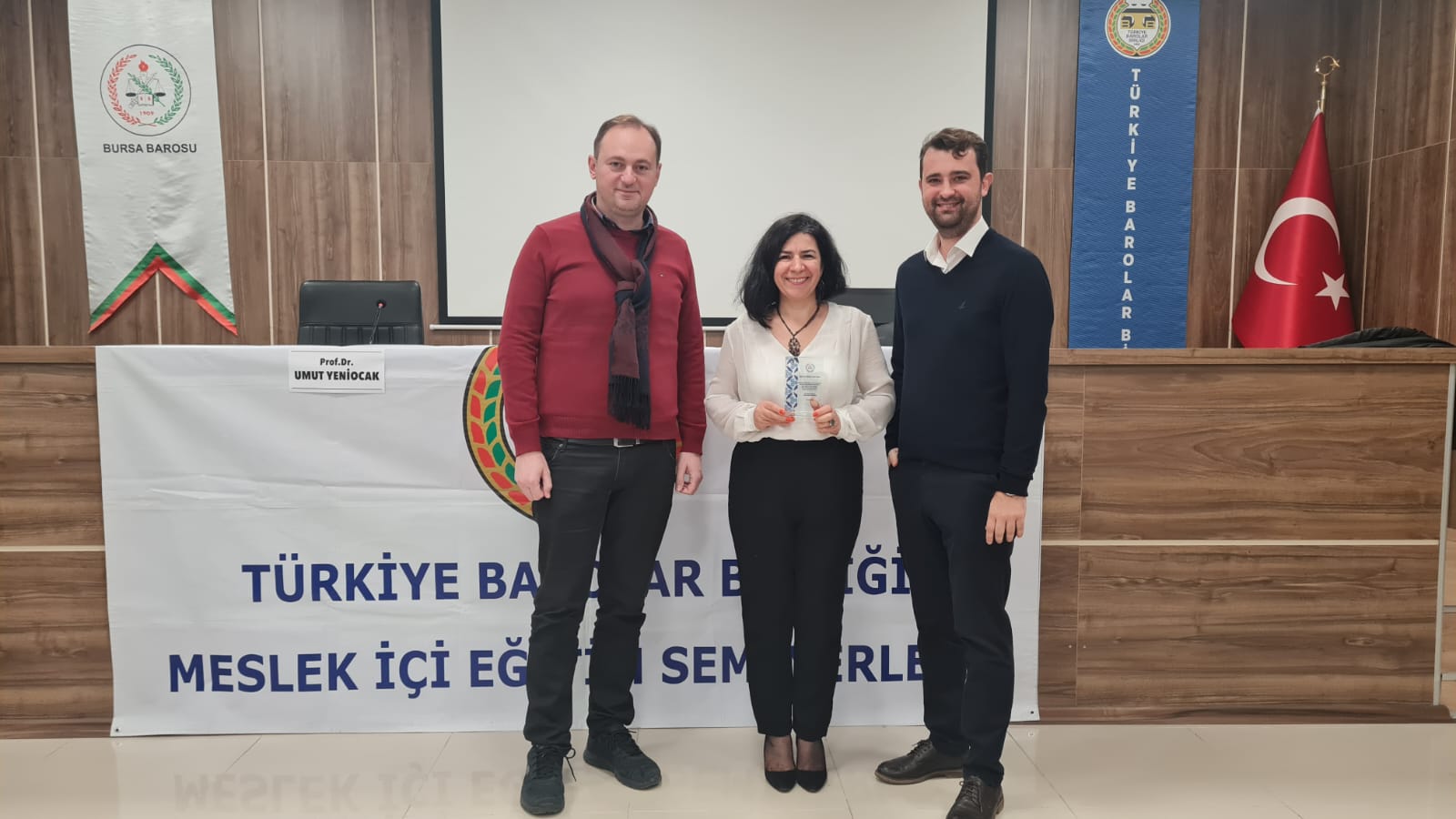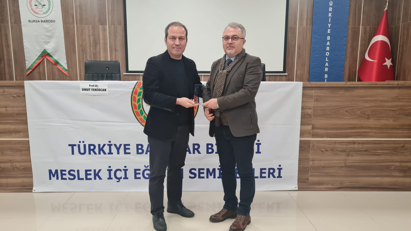 Türkiye Barolar Birliği ve Bursa Barosu işbirliğiyle düzenlenen "Kira Tespit ve Tahliye Davaları" konulu meslek içi eğitim semineri, Bursa Bölge Adliye Mahkemesi Konferans Salonu'nda yapıldı. TBB eğitimcilerinden Prof. Dr. Umut Yeniocak'ın verdiği seminerde moderatörlüğü Bursa Barosu Yönetim Kurulu Üyesi Av. Müberra Gülen Aydın yaptı. Semineri Bursa Barosu Başkanı Av. Metin Öztosun ile yönetim kurulu üyeleri de izledi.