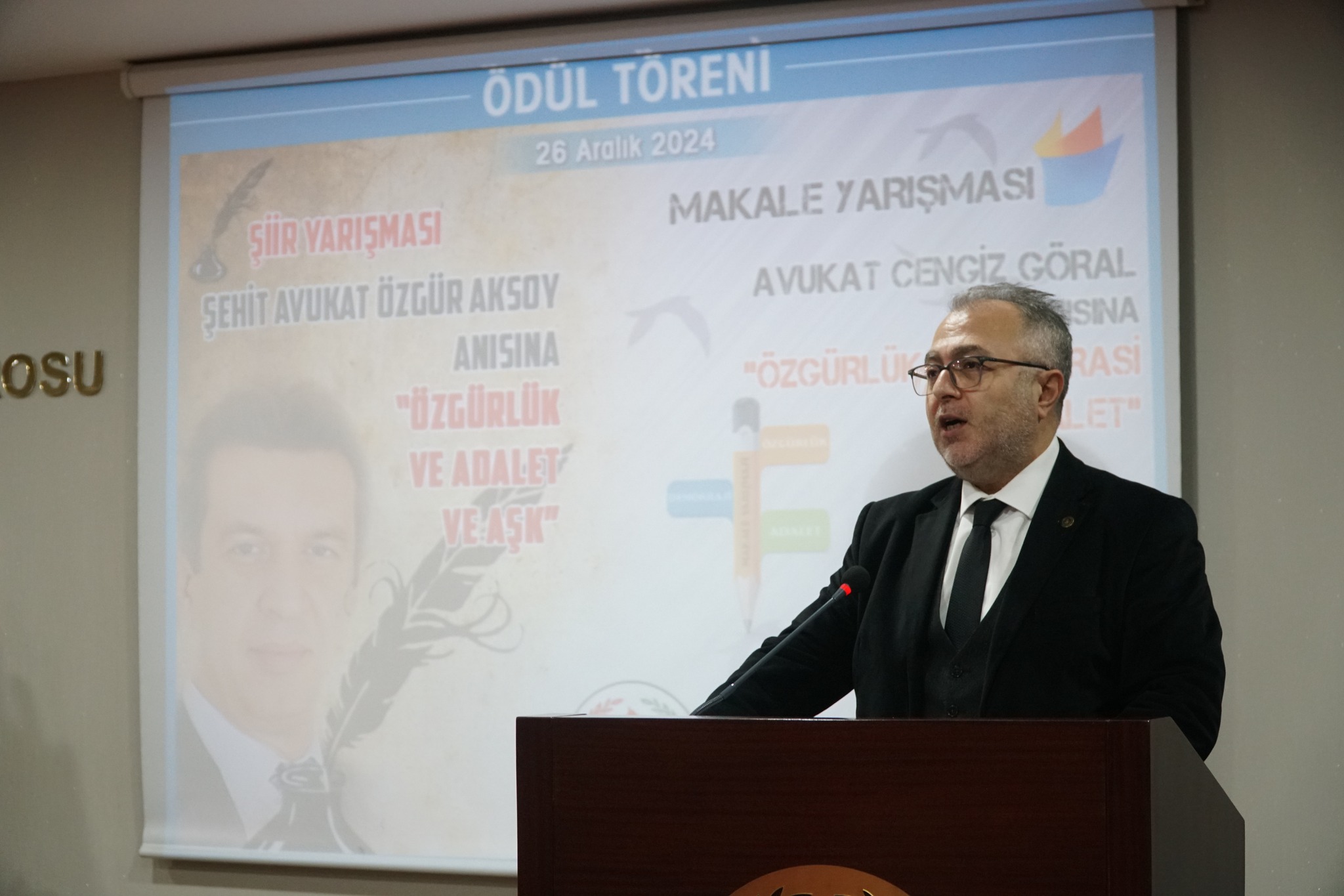 Bursa Barosu'nun geleneksel hale getirdiği Av. Cengiz Göral Makale ve Av. Özgür Aksoy Şiir yarışmalarının 2024 ödülleri törenle sahiplerini buldu.