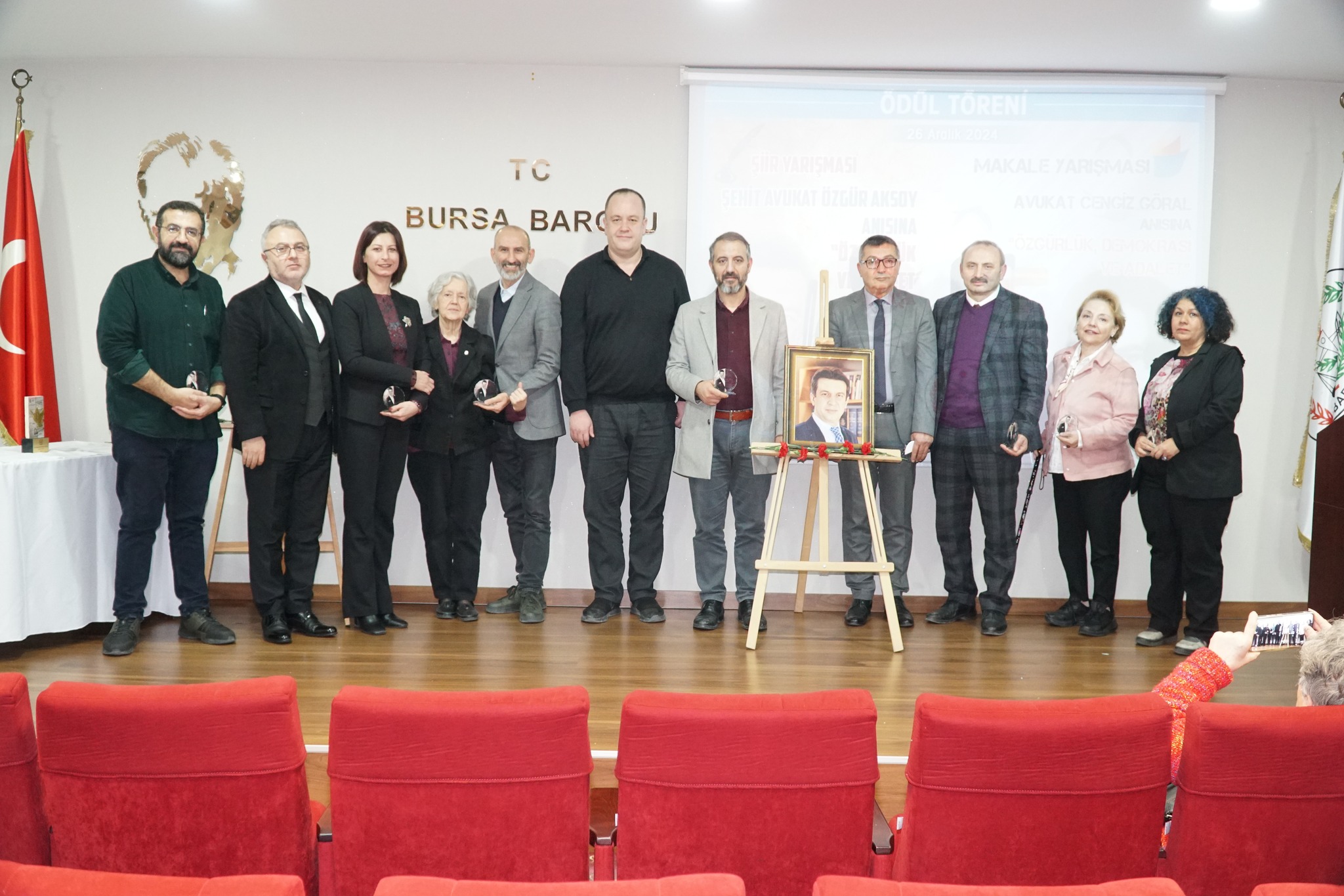 Yarışmalarda ödüle layık görülen eserlerin sahiplerine plaketleri Bursa Barosu Başkanı Av. Metin Öztosun, önceki baro başkanı ve TBB yönetim kurulu üyesi Av. Gürkan Altun, Av. Özgür Aksoy'un annesi Gülay Aksoy tarafından verildi.