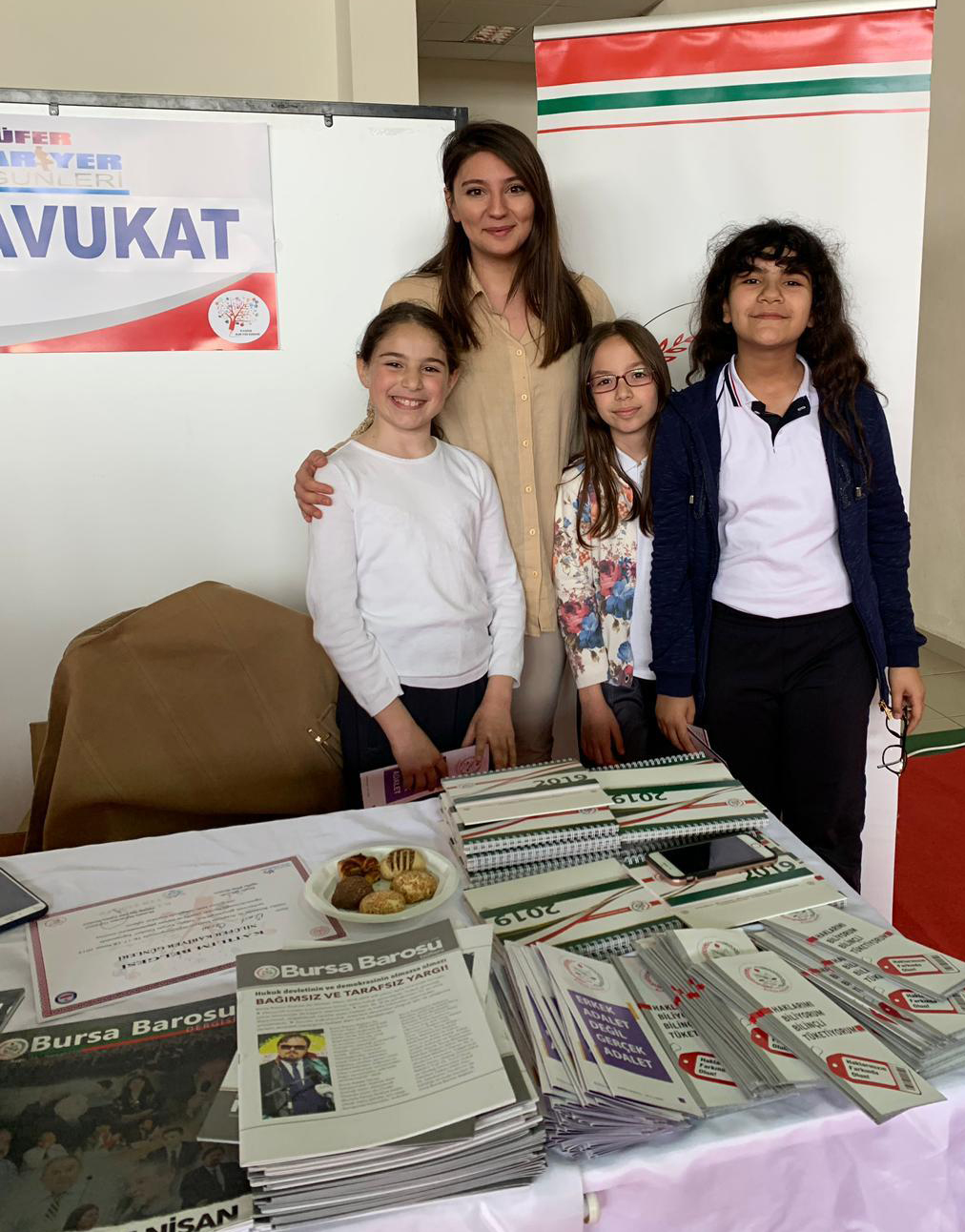 Bursa Nilüfer İlçe Milli Eğitim Müdürlüğü'nce öğrencilerin meslek türleri ile üst öğrenim kurumlarını tanımasını sağlamak için düzenlenen Nilüfer Kariyer Günleri'nde Bursa Barosu da yer aldı. Rotary İlkokulu Spor Salonu'nda gerçekleştirilen etkinlikte Bursa Barosu Genç YK Temsilcileri Av. Edanur Şenyüz, Av. Ümit Özcan ve Av. Gülender Adıgüzel, Bursa Barosu'nu standını ziyaret eden öğrencilere avukatlık mesleğini tanıttılar.
