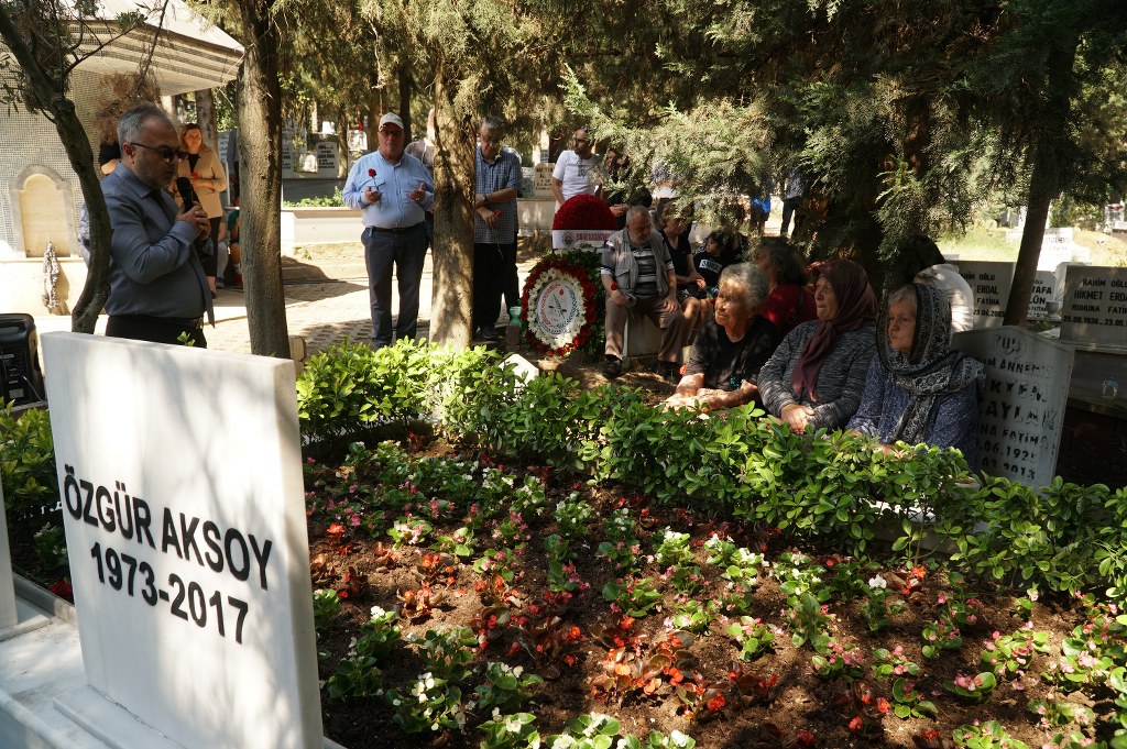 Daha sonra Orhangazi Yeniköy Mezarlığı'na geçildi. Bursa Barosu Başkanı Av. Metin Öztosun, Özgür Aksoy'u anarken, birlikte tiyatro sahnesinde yer aldıklarını ifade etti, Aksoy'un adalet ve barış için aşkla mücadele ettiğini, o mücadeleyi sürdürmeye kararlı olduklarını anlattı.