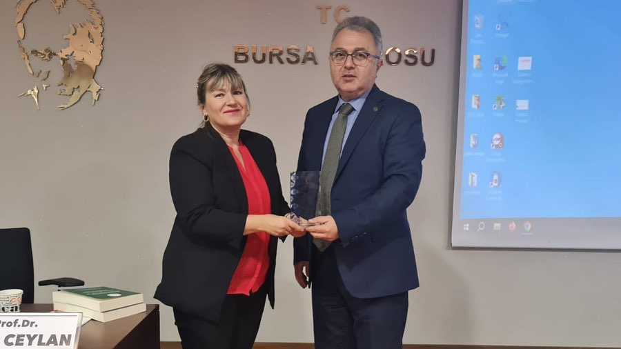 Bursa Barosu Eğitim Merkezi BUBEM tarafından düzenlenen Tüketici Sözleşmeleri ve Güncel Kararlar başlıklı konferans Av. Özgür Aksoy Konferans Salonu'nda yapıldı. İstanbul Aydın Üniversitesi Hukuk Fakültesi öğretim üyesi Prof. Dr. Ebru Ceylan'ın verdiği konferansı Bursa Barosu Başkanı Av. Metin Öztosun da izledi. Öztosun, konferans sonunda Ceylan'a anı plaketi verdi.