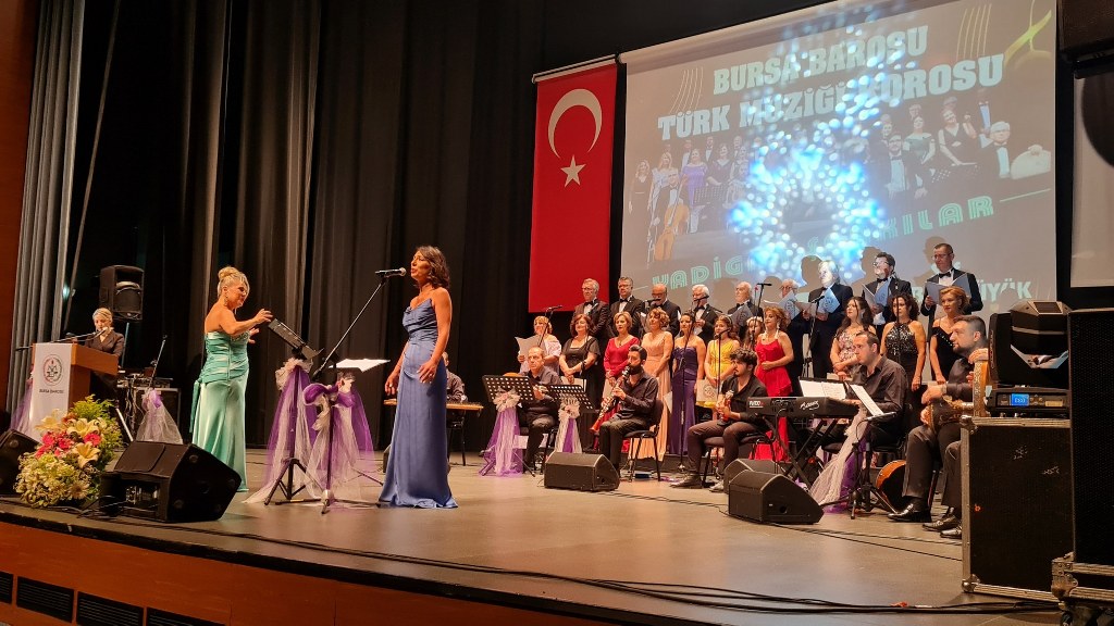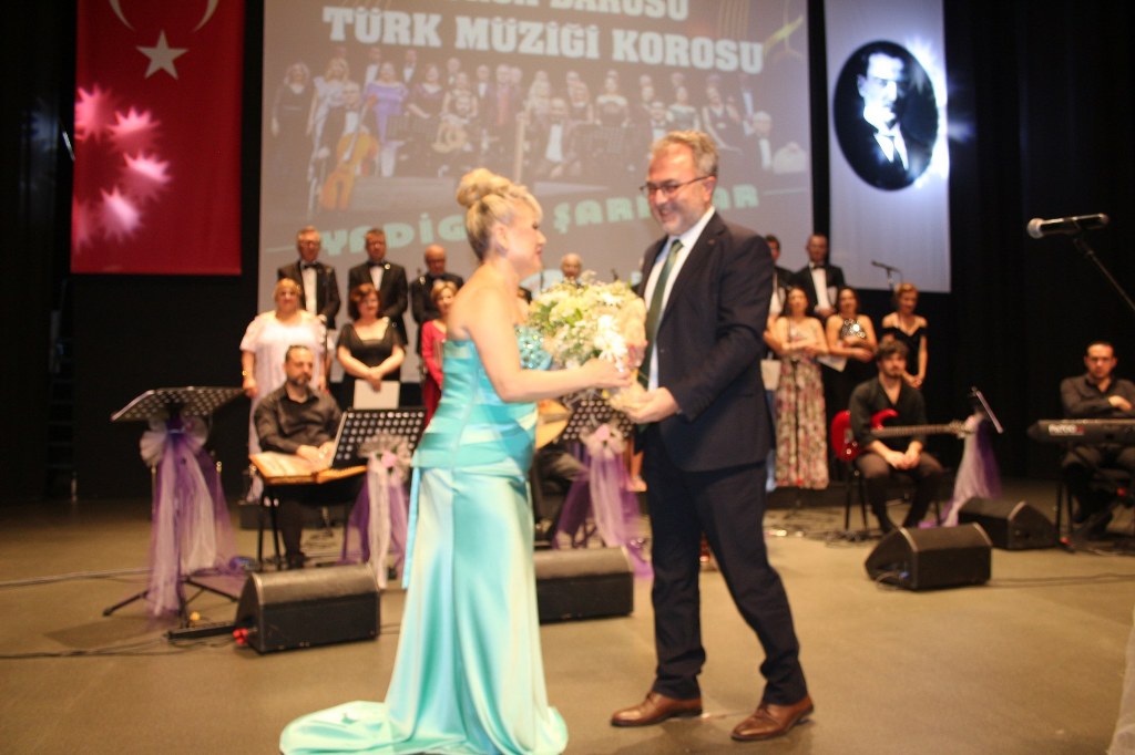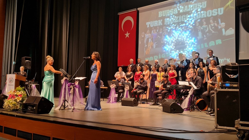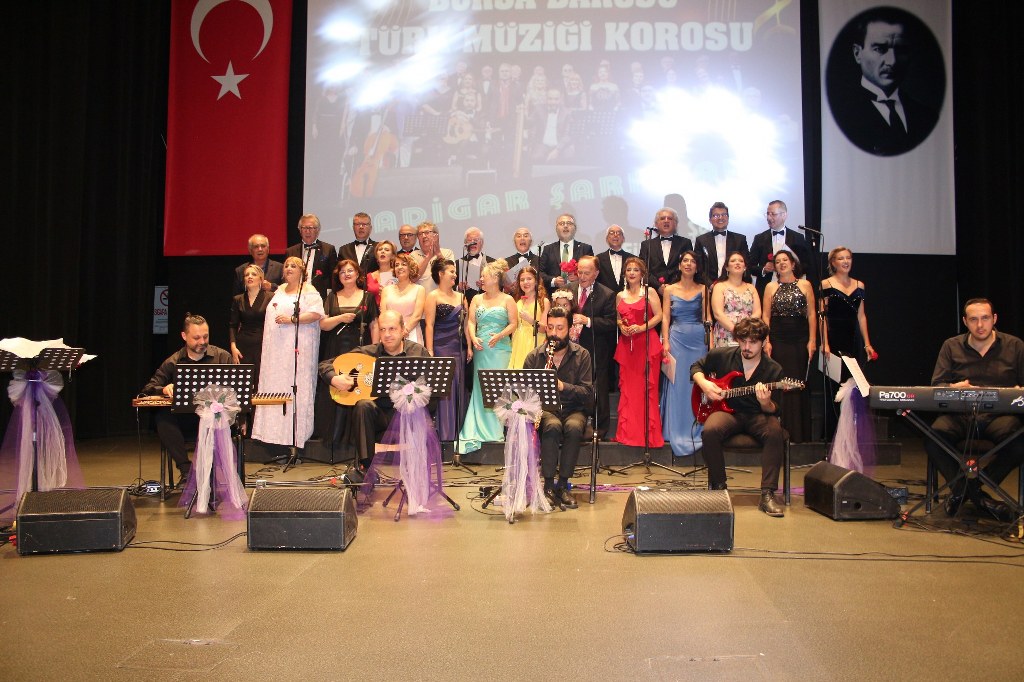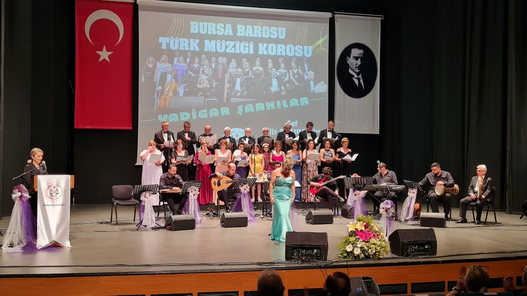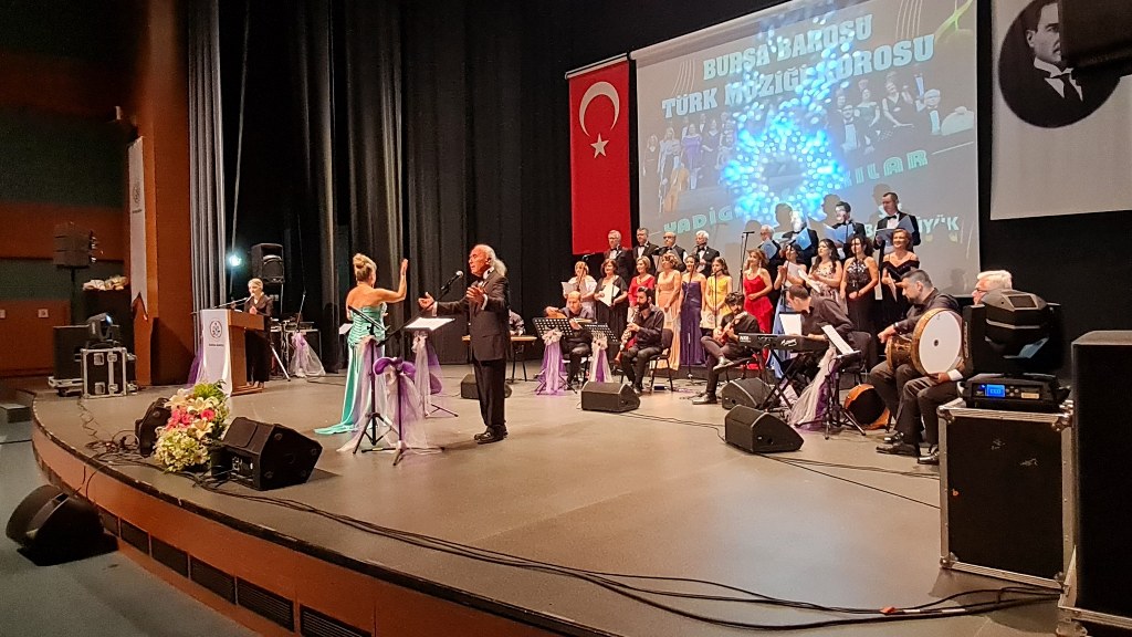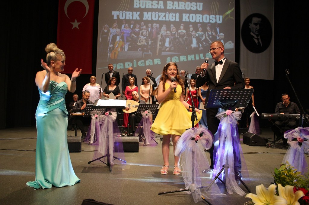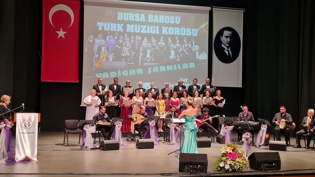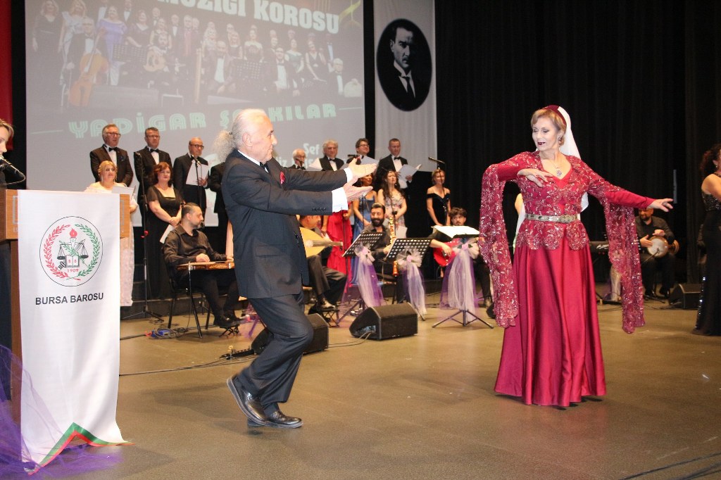 Bursa Barosu Türk Müziği Korosu'nun “Yadigar Şarkılar” konseptiyle düzenlenen konserinde izleyiciler müzikle dolu keyifli bir akşam yaşadı. BAOB Oditoryum'da gerçekleştirilen konseri, Bursa Barosu Başkanı Av. Metin Öztosun, yönetim kurulu üyeleri, Bursa Barosu önceki başkanlarından Avukat Yahya Şimşek, Devlet Sanatçısı Kutlu Payaslı, TEV Bursa Şubesi Başkanı Mehmet Çalışkan ile çok sayıda müziksever izledi. Metin Öztosun, konser sonrası Şef Filiz Başıbüyük'e teşekkür çiçeği sunarken, “Bu akşam, uzun zamandır yaşanan sıkıntılar nedeniyle şarkı dinlemeyi de, söylemeyi de unuttuğumuzu farkettim. Korist ve solist arkadaşlarım söyledikleri şarkılarla yıldız olup aktılar. Cumhuriyetimizin 100. yılını da hep birlikte coşkulu şarkılarla kutlamayı diliyorum” dedi.