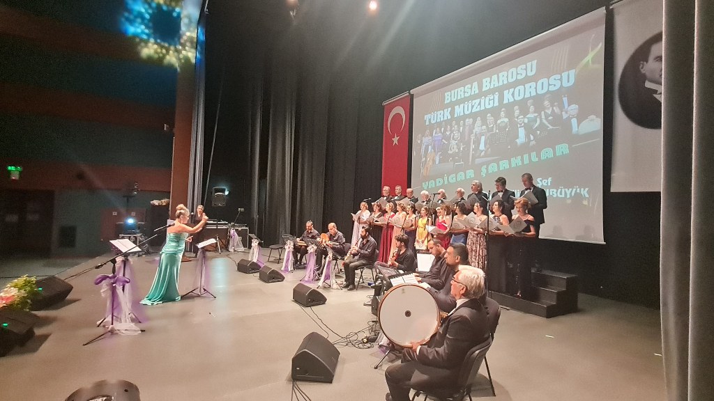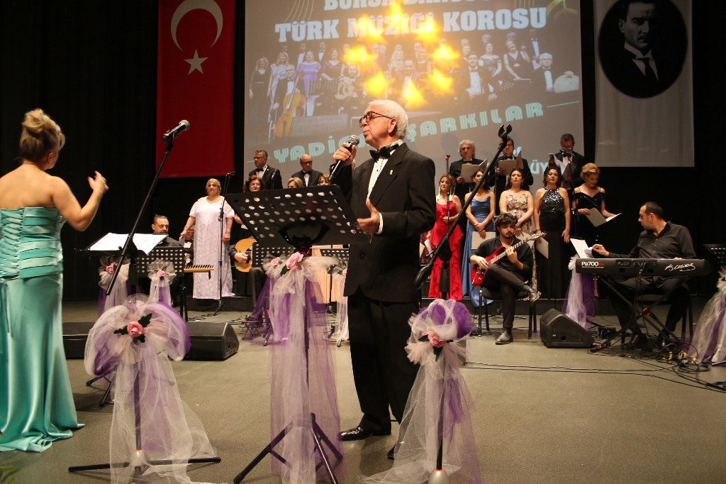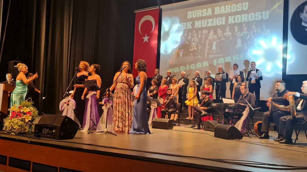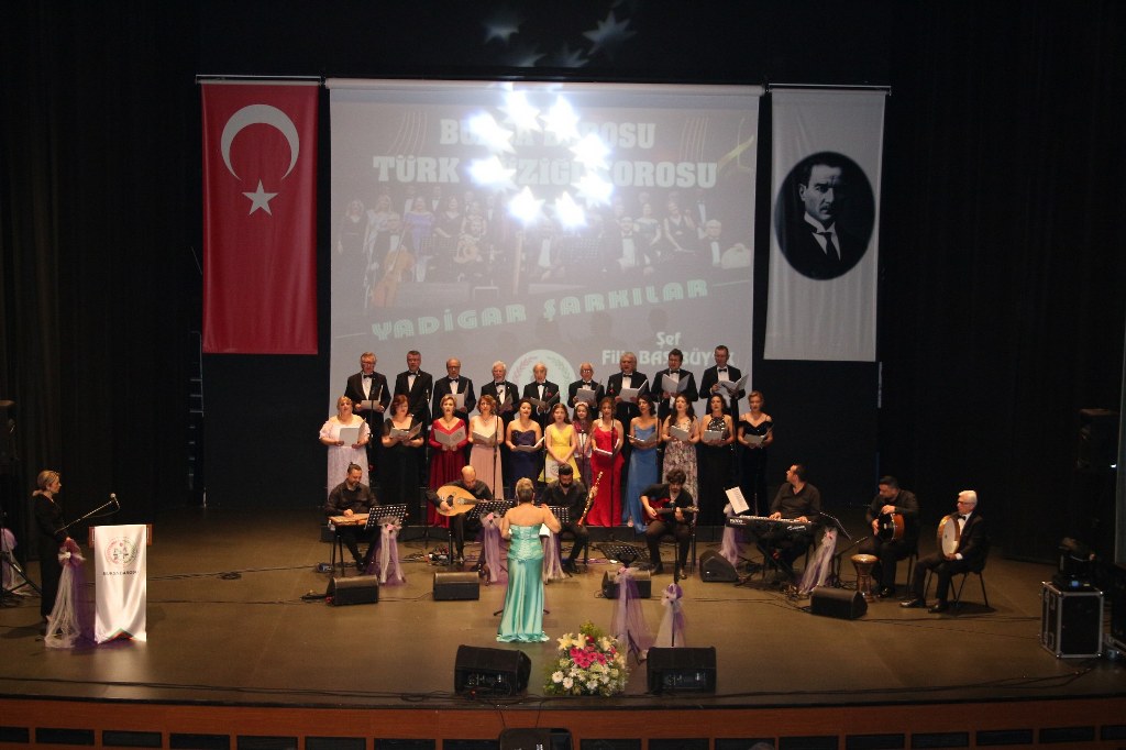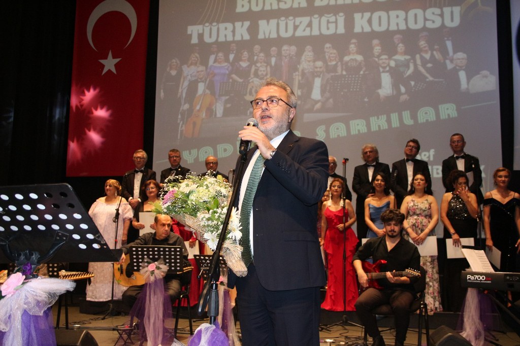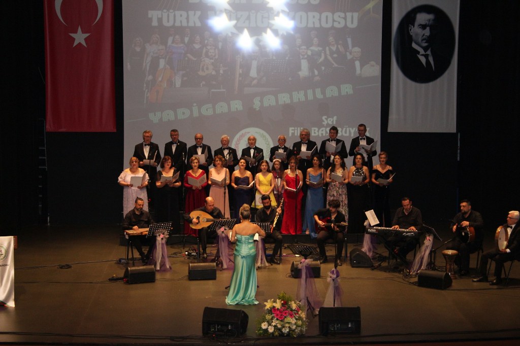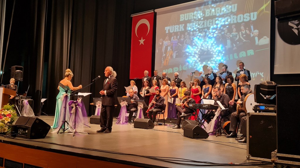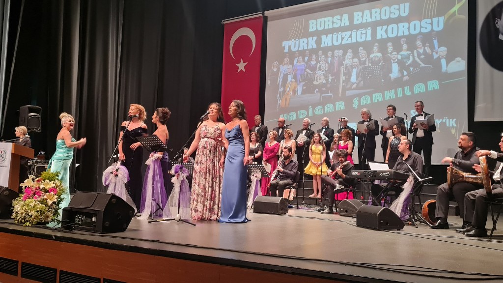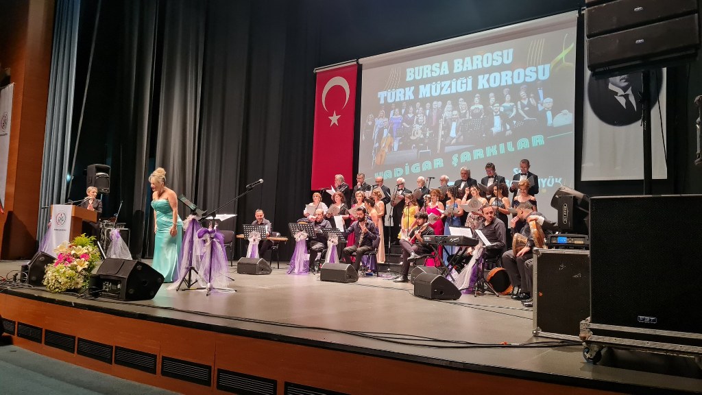 Bursa Barosu Türk Müziği Korosu'nun “Yadigar Şarkılar” konseptiyle düzenlenen konserinde izleyiciler müzikle dolu keyifli bir akşam yaşadı. BAOB Oditoryum'da gerçekleştirilen konseri, Bursa Barosu Başkanı Av. Metin Öztosun, yönetim kurulu üyeleri, Bursa Barosu önceki başkanlarından Avukat Yahya Şimşek, Devlet Sanatçısı Kutlu Payaslı, TEV Bursa Şubesi Başkanı Mehmet Çalışkan ile çok sayıda müziksever izledi. Metin Öztosun, konser sonrası Şef Filiz Başıbüyük'e teşekkür çiçeği sunarken, “Bu akşam, uzun zamandır yaşanan sıkıntılar nedeniyle şarkı dinlemeyi de, söylemeyi de unuttuğumuzu farkettim. Korist ve solist arkadaşlarım söyledikleri şarkılarla yıldız olup aktılar. Cumhuriyetimizin 100. yılını da hep birlikte coşkulu şarkılarla kutlamayı diliyorum” dedi.