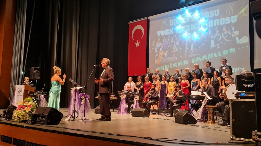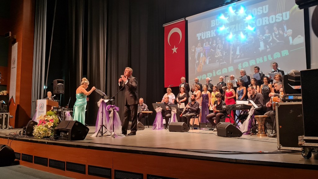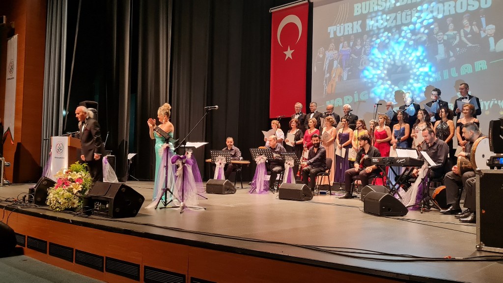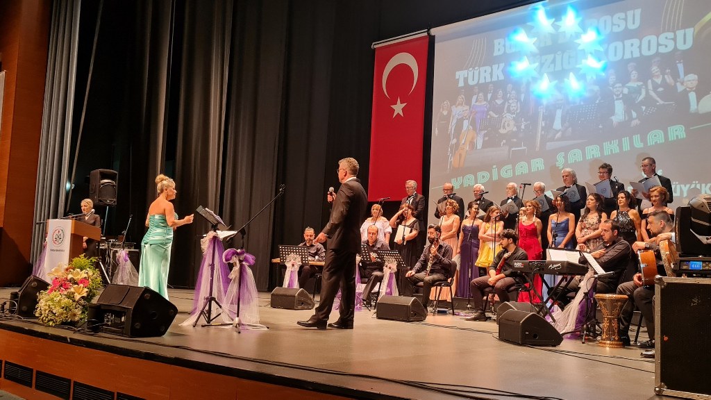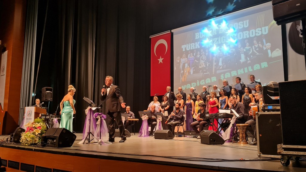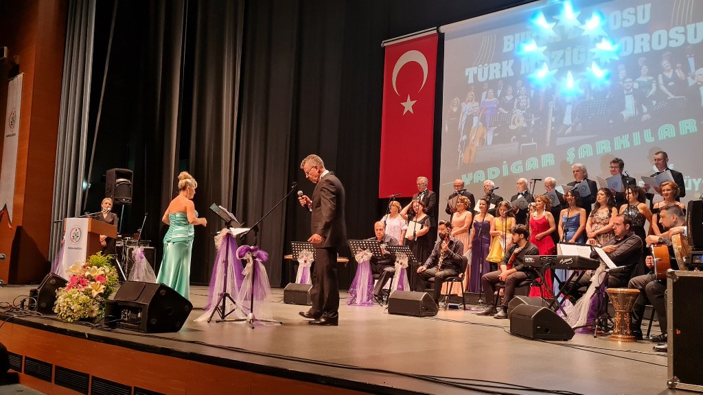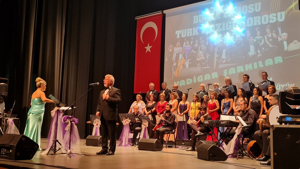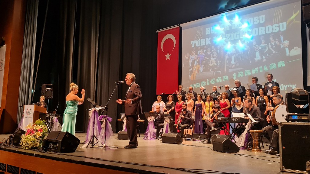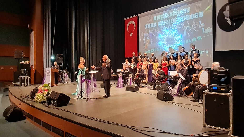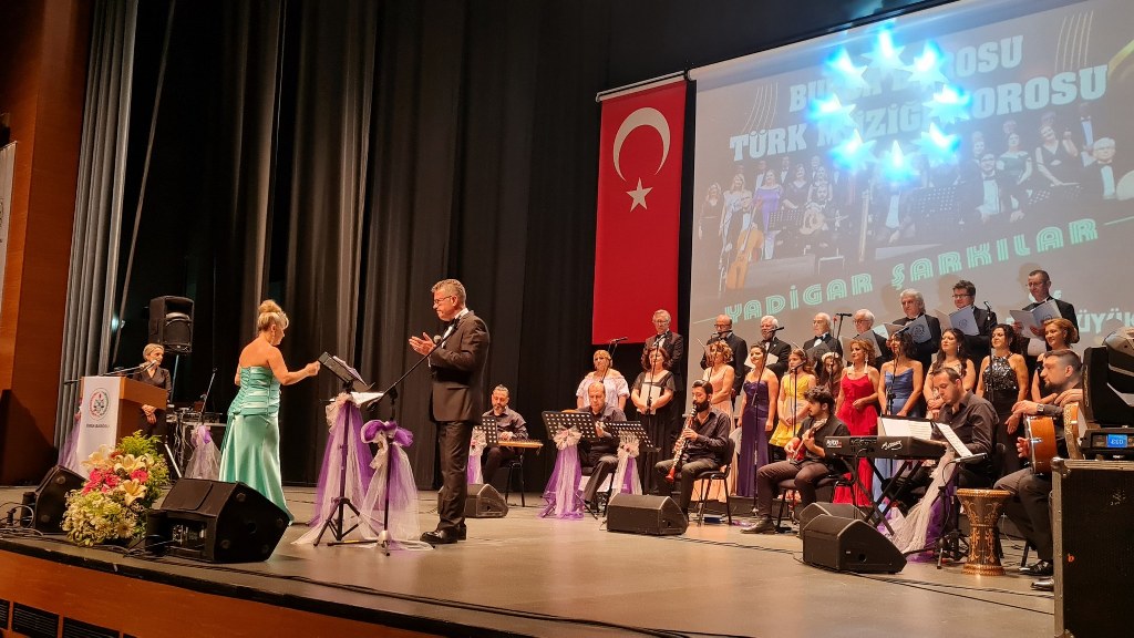 Bursa Barosu Türk Müziği Korosu'nun “Yadigar Şarkılar” konseptiyle düzenlenen konserinde izleyiciler müzikle dolu keyifli bir akşam yaşadı. BAOB Oditoryum'da gerçekleştirilen konseri, Bursa Barosu Başkanı Av. Metin Öztosun, yönetim kurulu üyeleri, Bursa Barosu önceki başkanlarından Avukat Yahya Şimşek, Devlet Sanatçısı Kutlu Payaslı, TEV Bursa Şubesi Başkanı Mehmet Çalışkan ile çok sayıda müziksever izledi. Metin Öztosun, konser sonrası Şef Filiz Başıbüyük'e teşekkür çiçeği sunarken, “Bu akşam, uzun zamandır yaşanan sıkıntılar nedeniyle şarkı dinlemeyi de, söylemeyi de unuttuğumuzu farkettim. Korist ve solist arkadaşlarım söyledikleri şarkılarla yıldız olup aktılar. Cumhuriyetimizin 100. yılını da hep birlikte coşkulu şarkılarla kutlamayı diliyorum” dedi.