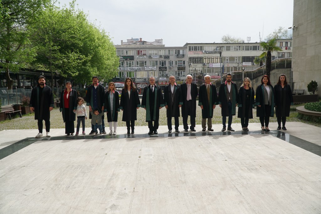 Bursa Barosu başkan ve kurul üyeleri ile avukatlar, 23 Nisan Ulusal Egemenlik ve Çocuk Bayramı'nı Adalet Sarayı tören alanında kutladı.