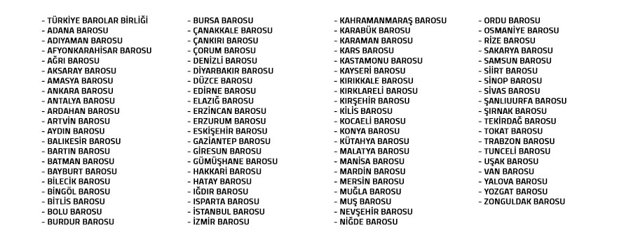 Adli ve idari başvuruların yapılması suretiyle yasal sürecin tüm yönleriyle Türkiye Barolar Birliği ve 81 İl Barosu tarafından en üst düzeyde hassasiyet ve kararlılıkla takip edildiğini kamuoyunun bilgisine sunuyor ve tekrar hatırlatıyoruz;